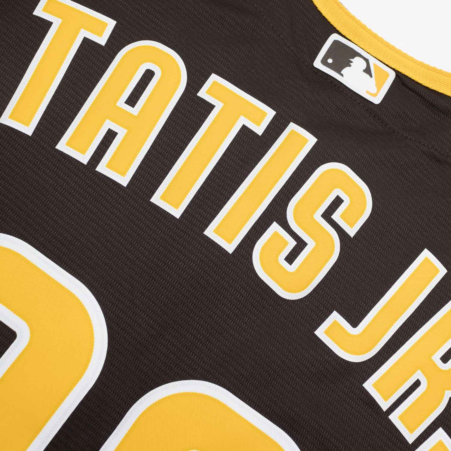 Das offizielle San Diego Padres Spielertrikot von Nike bringt dich deinem Idol Fernando Tatís Jr. nahe. Die Rückseite dieses Baseball Trikots ist mit dem Spielernamen TATIS JR. und der Spielernummer 23 dekoriert. Die im offiziellen Teamdesign gestalteten Buchstaben und Nummern sind als Twill-Patches aufgebracht und überzeugen jeden Baseball-Fan mit der hochwertigen Verarbeitung.