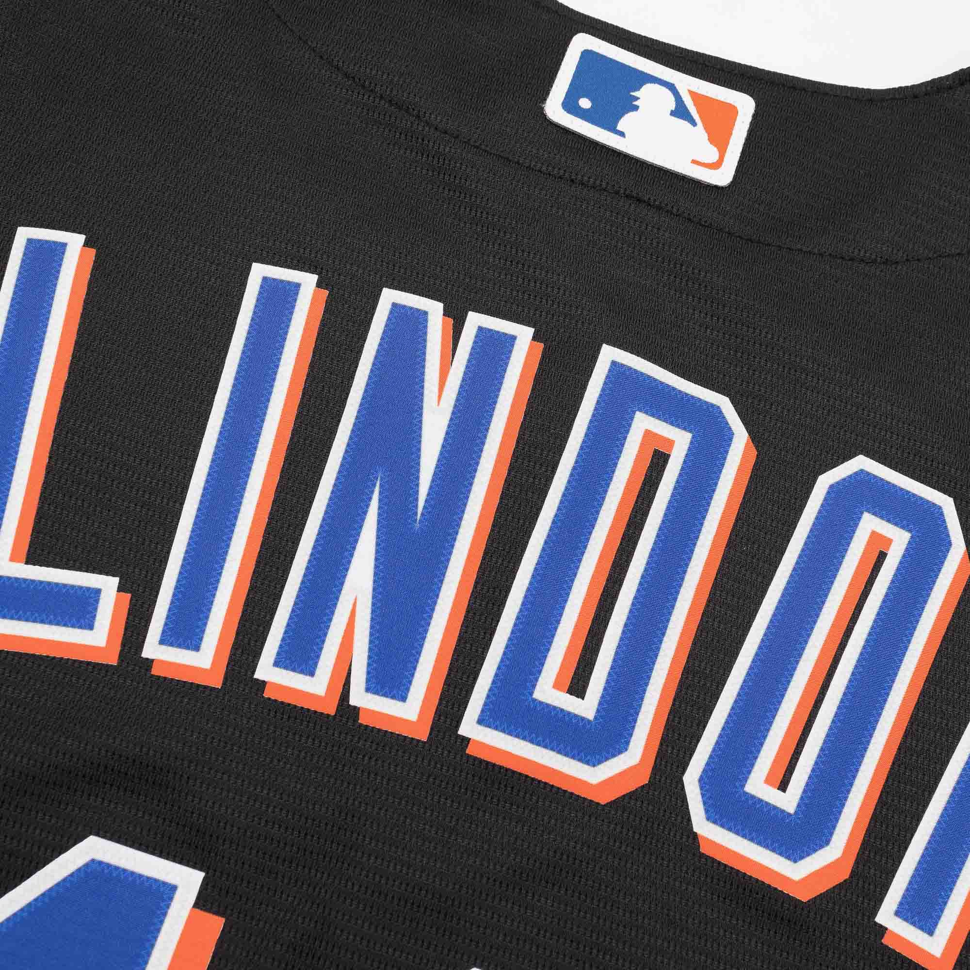 Nike MLB Herren Baseball Player Trikot von New York Mets Superstar Francisco Lindor im offiziellen Replica Alternate Design.
