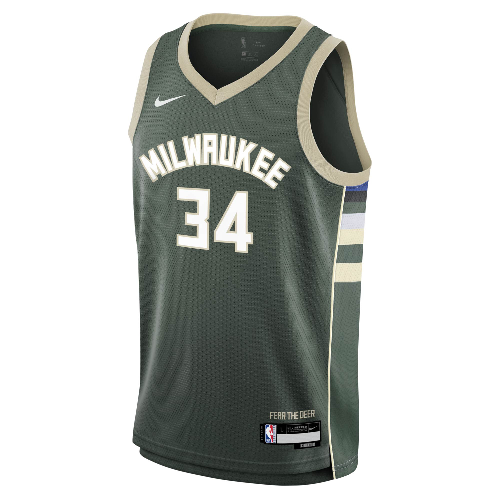 Nike NBA Youth Icon Edition Basketball Swingman Trikot von Milwaukee Bucks Superstar Giannis Antetokounmpo für ältere Kinder und Jugendliche.