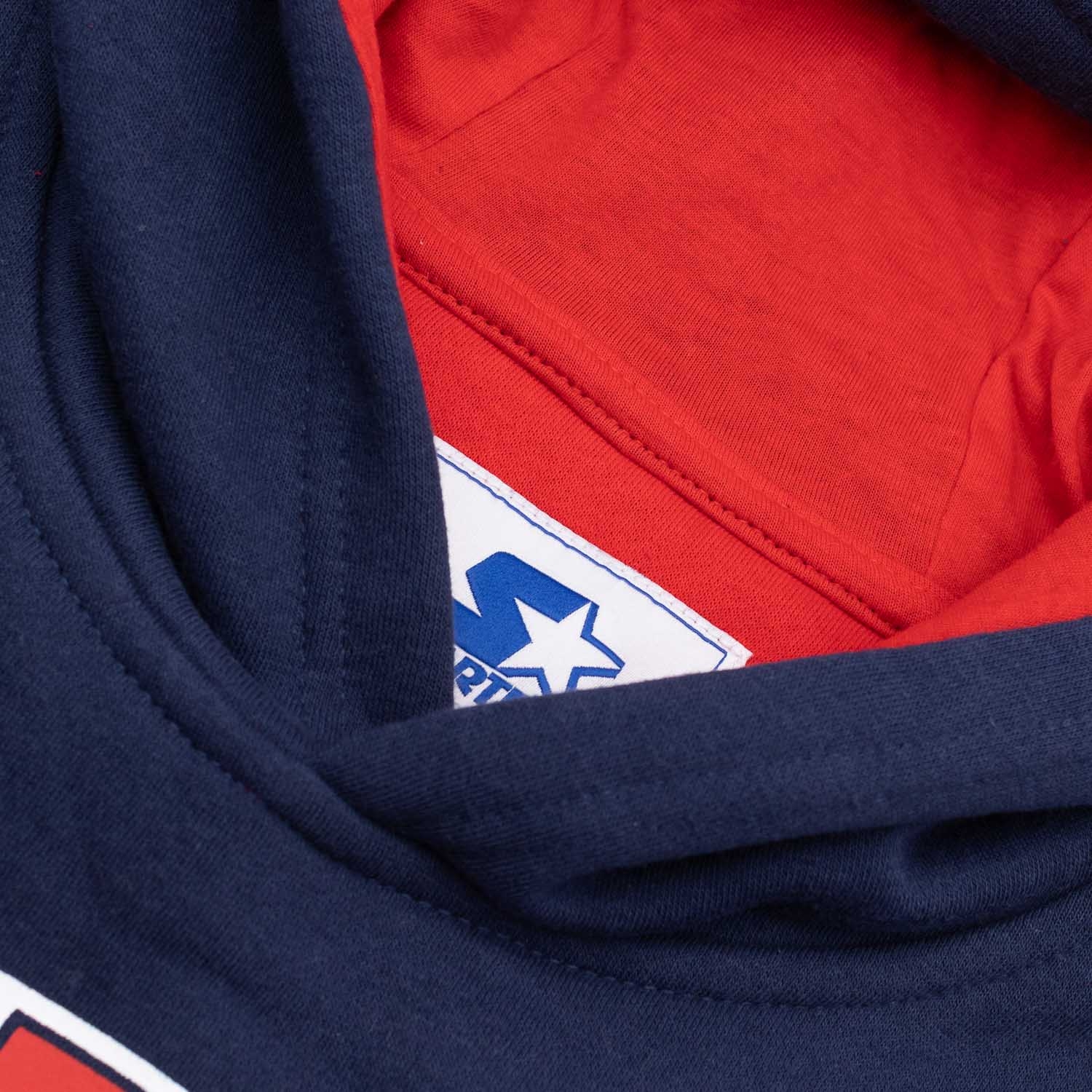 - Teamfarben: Der Hoodie hat einen Korpus in den Primärfarben des Teams mit einer überlappenden Kapuze in passender Farbe. Die Ärmel sind mit Sekundärfarben und weißen Akzenten versehen und sorgen für einen dynamischen Look.