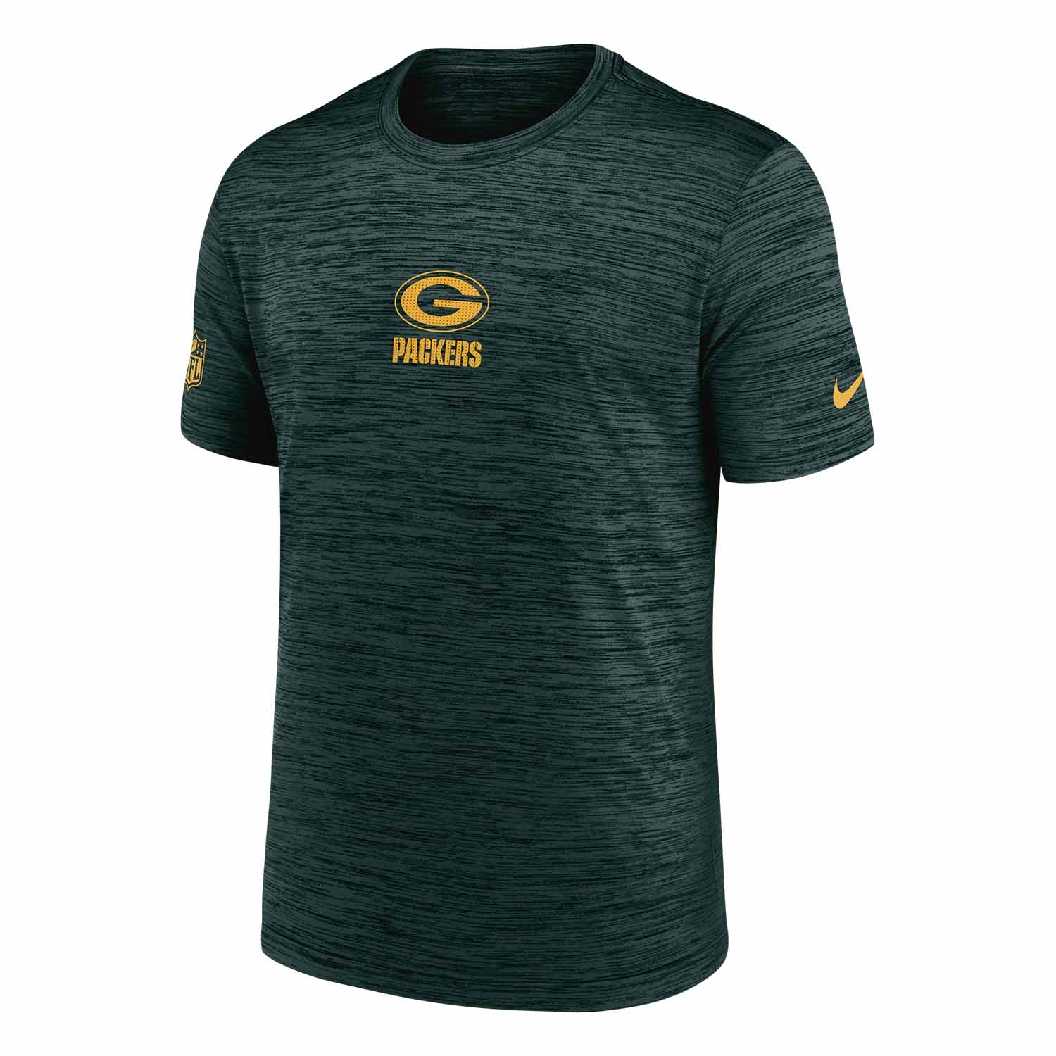 Nike Herren Velocity Dri-FIT Performance T-Shirt von deinen Green Bay Packers aus der offiziellen 2025 NFL On-Field Sideline Kollektion.