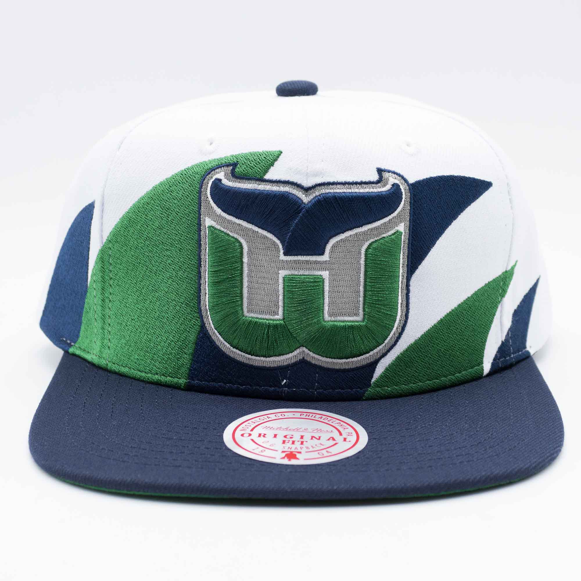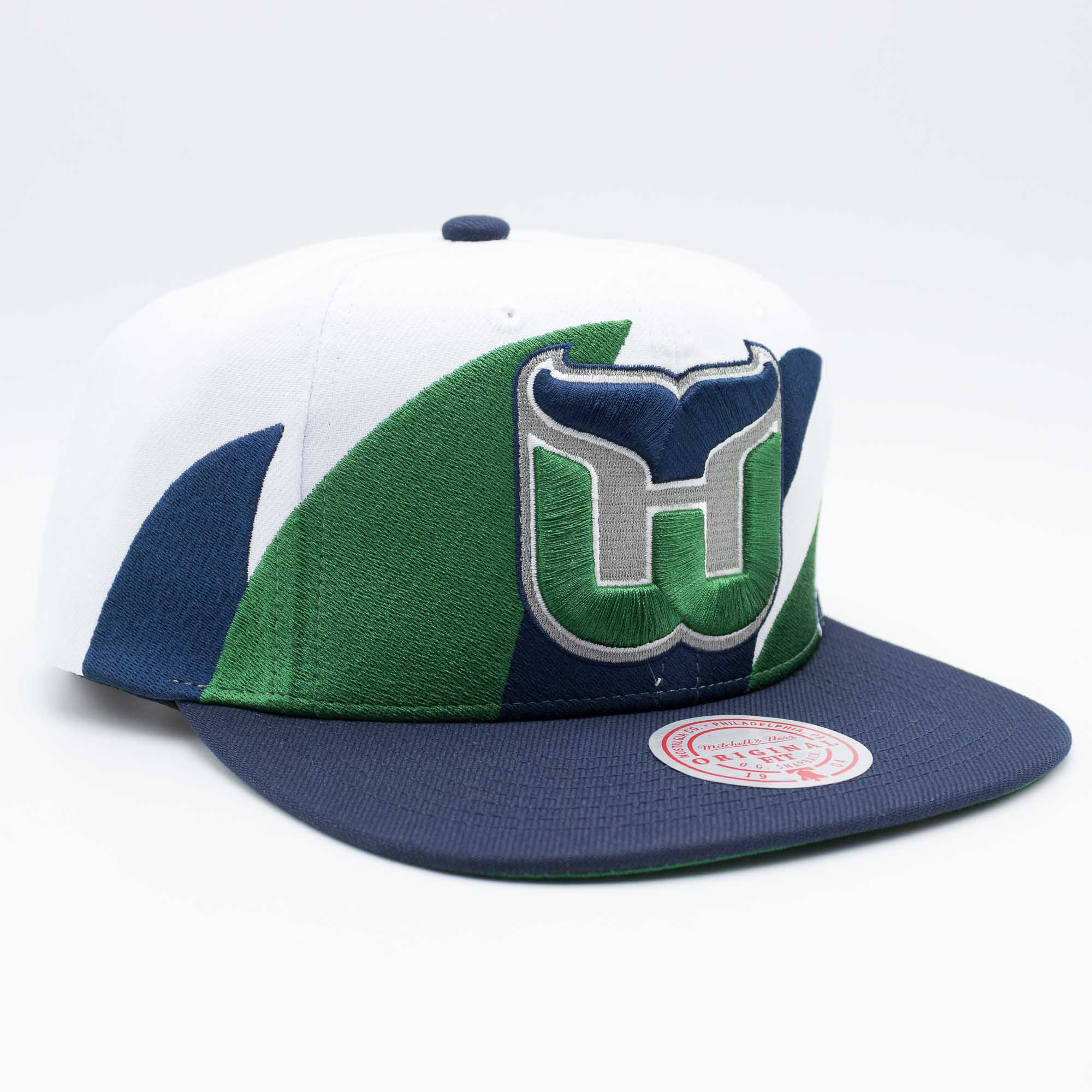 Mitchell & Ness NHL Original Fit Eishockey Snapback Cap von den Hartford Whalers im furchteinflößenden Sharktooth Style.