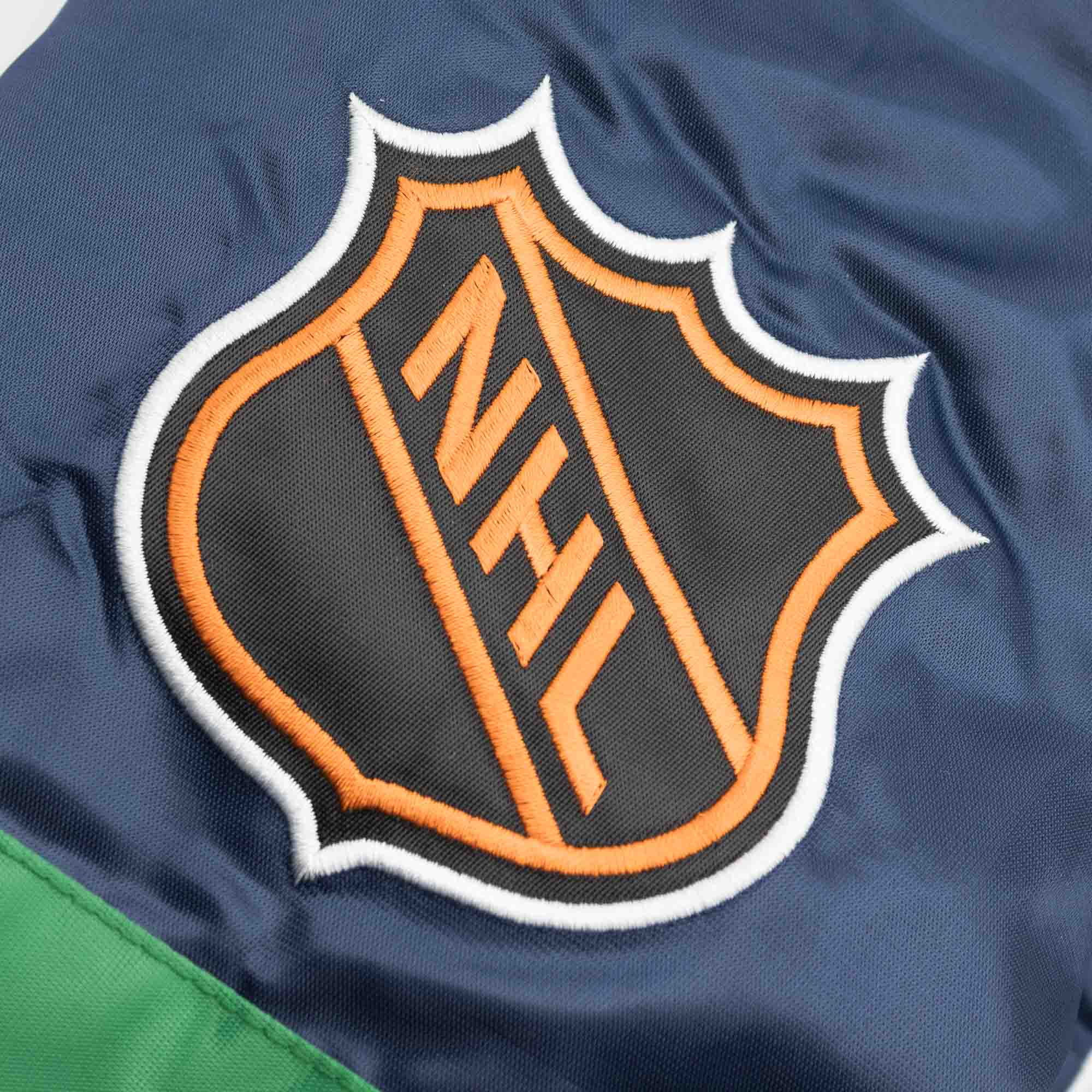 Die hochwertige Außenhülle aus 100% Polyester im Satin-Look bietet dir nicht nur Schutz gegen die Elemente, sondern kommt extrem stylisch daher und die durchgehende Knopfleiste erlaubt dir lässige Kombinationsmöglichkeiten mit deinem restlichen NHL-Outfit. Zwei seitlichen Taschen und eine zwei Innentaschen bieten praktische Funktionalität. Sowohl die Rippbündchen als auch die Innenseite der Jacke ist in der klassischen Teamfarbe gehalten und bieten dir damit ein weiteres, besonderes Style Element. Mit der Satin Varsity Jacke von Starter bringst du deinen NHL-Look auf Vordermann und musst keinesfalls auf deinen Hartford Whalers-Teamsupport verzichten.