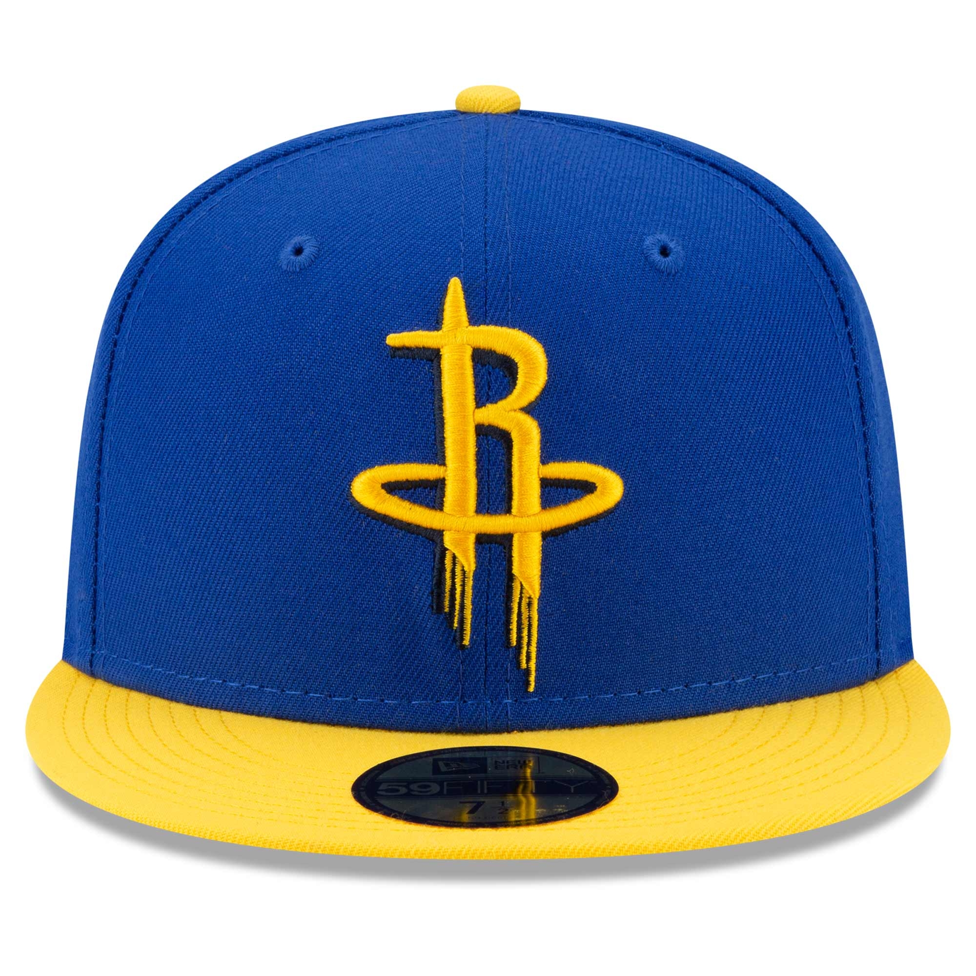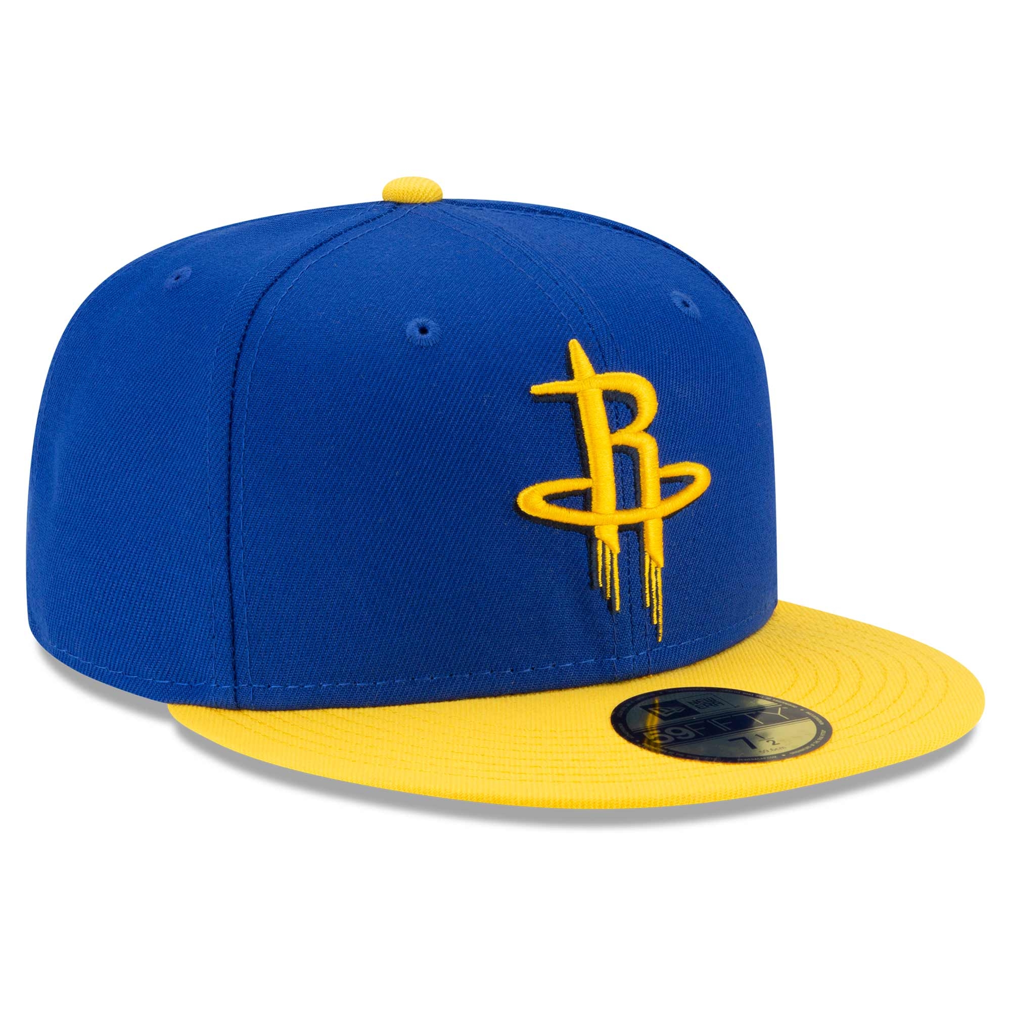 New Era Basketball 59FIFTY Fitted Cap von deinen Houston Rockets aus der 2021 NBA Flash Kollektion im Blau-Gelben Colorpack Design.