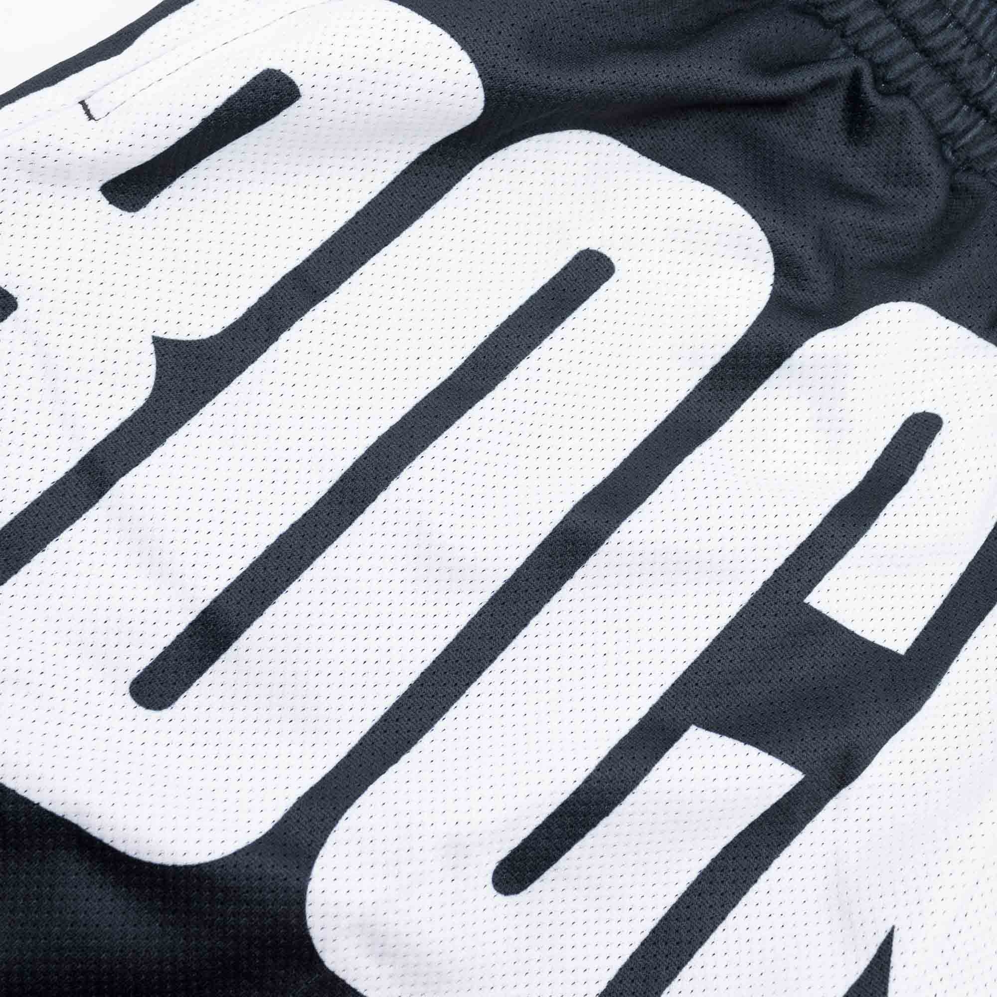 Black and White Big Face 3.0 NBA Shorts mit extra großen Teamlogo auf der Vorderseite. Mit diesen Shorts zeigst du in Übergröße welches Team du unterstützt! Die klassischen NBA Shorts bestehen aus doppeltseitigen Polyester-Mesh und stehen den bekannten Mitchell & Ness Swingman Shorts in Verarbeitung und Style in nichts nach. Die seitlichen Taschen und der elastische Hosenbund mit innerem Kordelzug sorgen für einen angenehmen Tragekomfort. Das extra große Houston Rockets Teamlogo ist als Sublimationsdruck direkt in den Stoff eingebracht, zusätzlich ist ein kleines Team-Label am inneren Saum angebracht. Ein absolutes Must-Have für deinen Basketball-Sommer.