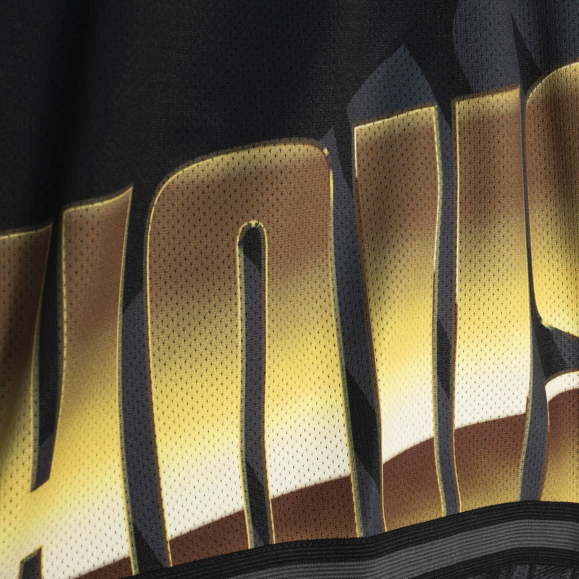 Die vierte Auflage der beliebten Big Face Kollektion von Mitchell and Ness kommt mit dem Gold-Status. Die schwarzen Shorts sind auf der Vorderseite mit den übergroßen Houston Rockets Wordmark in Gold dekoriert, dunkelgraue Schatten der Schriftzüge sorgen für den besonderen Look. Die klassischen NBA Shorts bestehen aus doppeltseitigen Polyester-Mesh und stehen den bekannten Mitchell & Ness Swingman Shorts in Verarbeitung und Style in nichts nach. Die seitlichen Taschen und der elastische Hosenbund mit innerem Kordelzug sorgen für einen angenehmen Tragekomfort. Der extra große Houston Rockets Schriftzug ist als Sublimationsdruck direkt in den Stoff eingebracht, zusätzlich ist ein kleines Team-Label am inneren Saum angebracht.