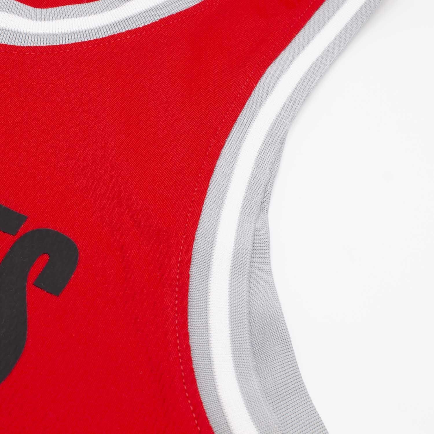 Trainiere wie die NBA-Profis mit diesem Houston Rockets Practice Jersey aus der offiziellen 2019/20 NBA Practice Kollektion. Das Dri-FIT High-Performance-Mikrofaserpolyester leitet Schweiß vom Körper weg und transportiert ihn an die Gewebeoberfläche, wo er verdunstet. Damit hilft das Trikot die Athletenkörper trocken zu halten, und ist außerdem extrem angenehm zu tragen. Auf der Vorderseite befindet sich das offizielle Houston Rockets NBA Practice Logo mit dem ROCKETS Schriftzug, dem NBA Logo, dem Nike Swoosh Logo und dem Basketball Schriftzug.