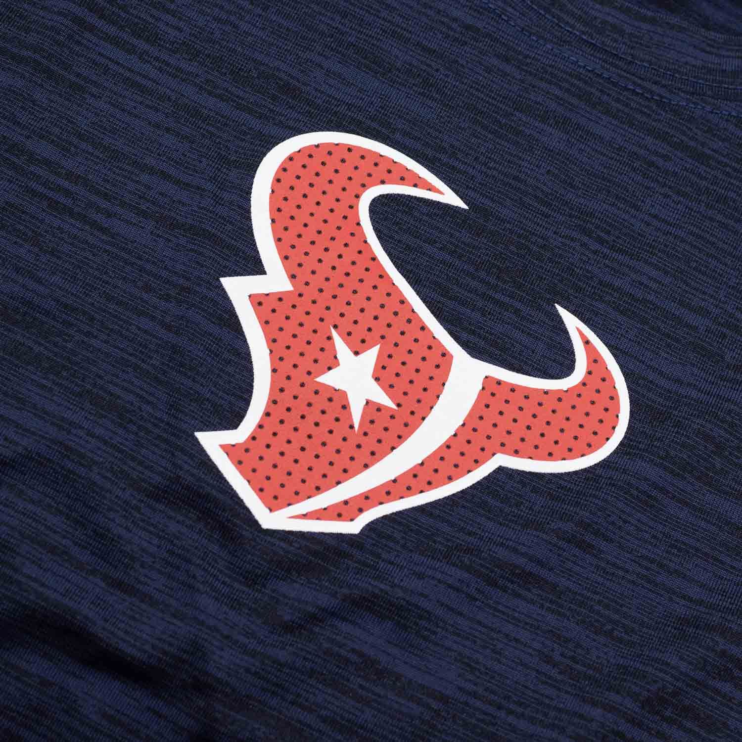 Auf der Vorderseite sitzt mittig das markante Texans Teamlogo, ergänzt durch das NFL Shield auf dem rechten Ärmel und dem Nike Swoosh Logo auf dem linken. Gefertigt aus leichtem, weichem 100 % Performance-Polyester bietet das Shirt hervorragenden Tragekomfort.
