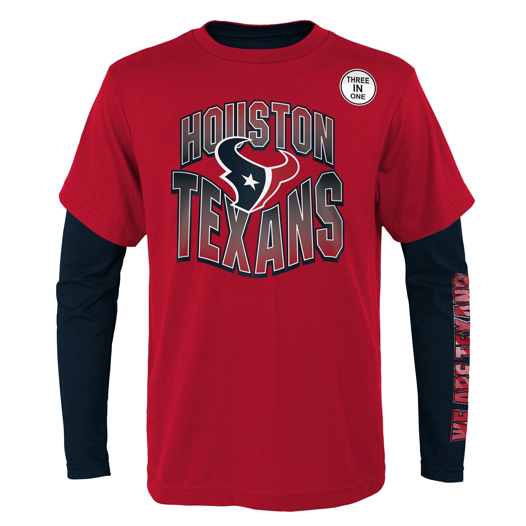 Outerstuff NFL Youth 3-in-1 Combo Shirt Set für Kinder und Jugendliche von den Houston Texans. Das Set besteht aus einem T-Shirt und einem Long Sleeve.