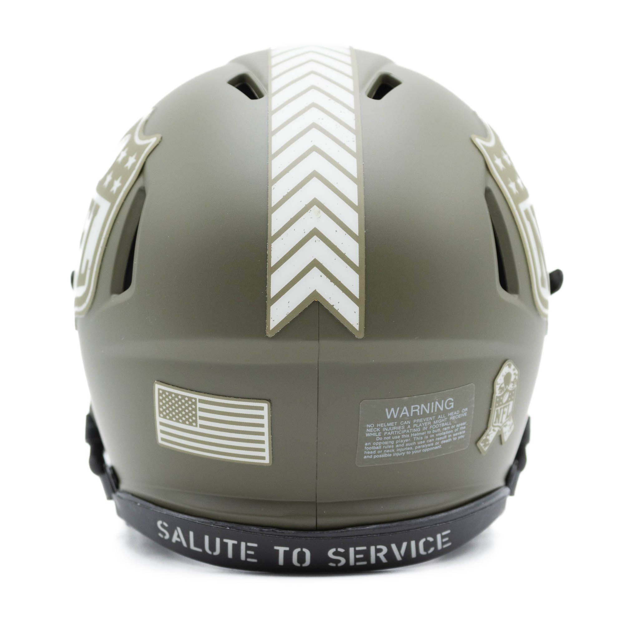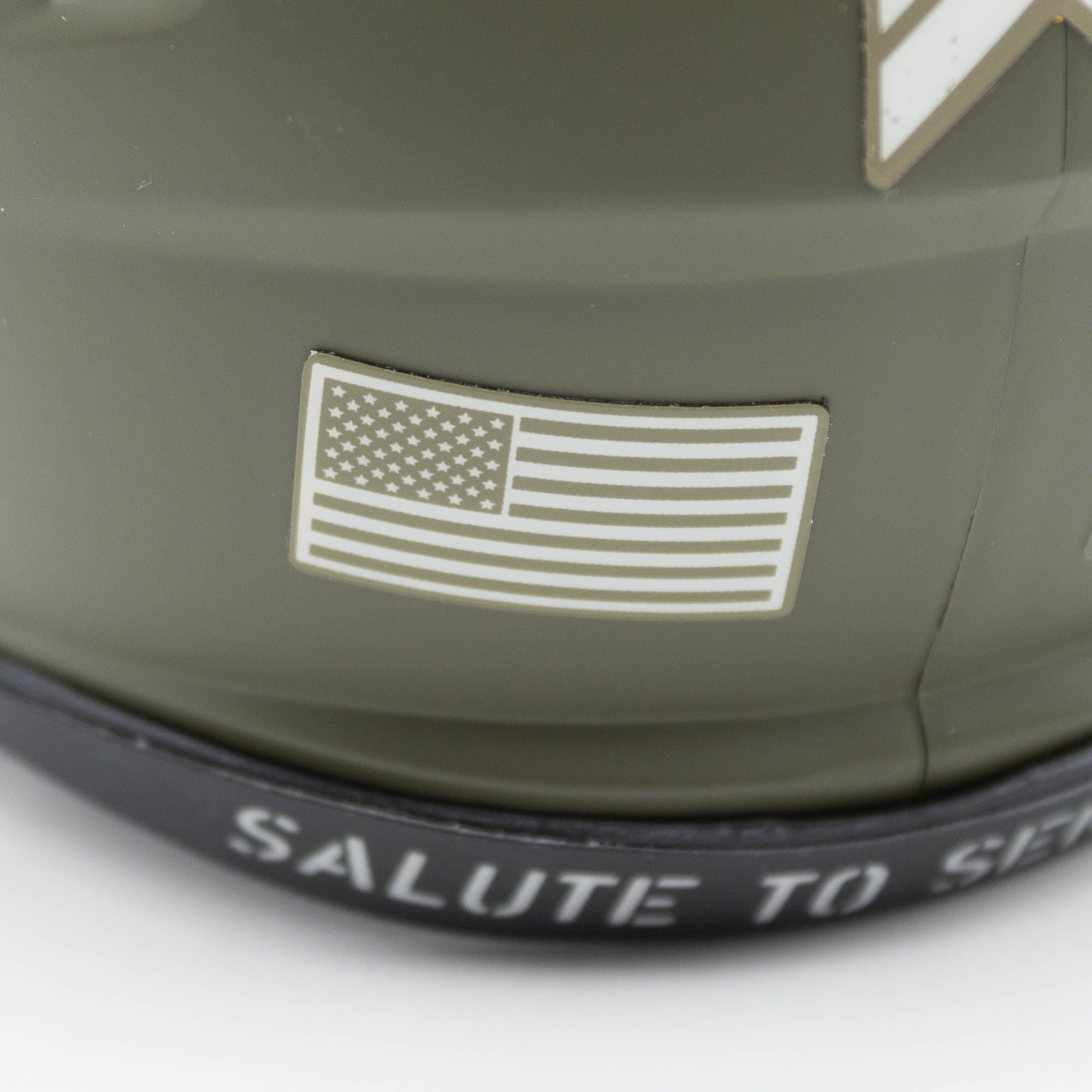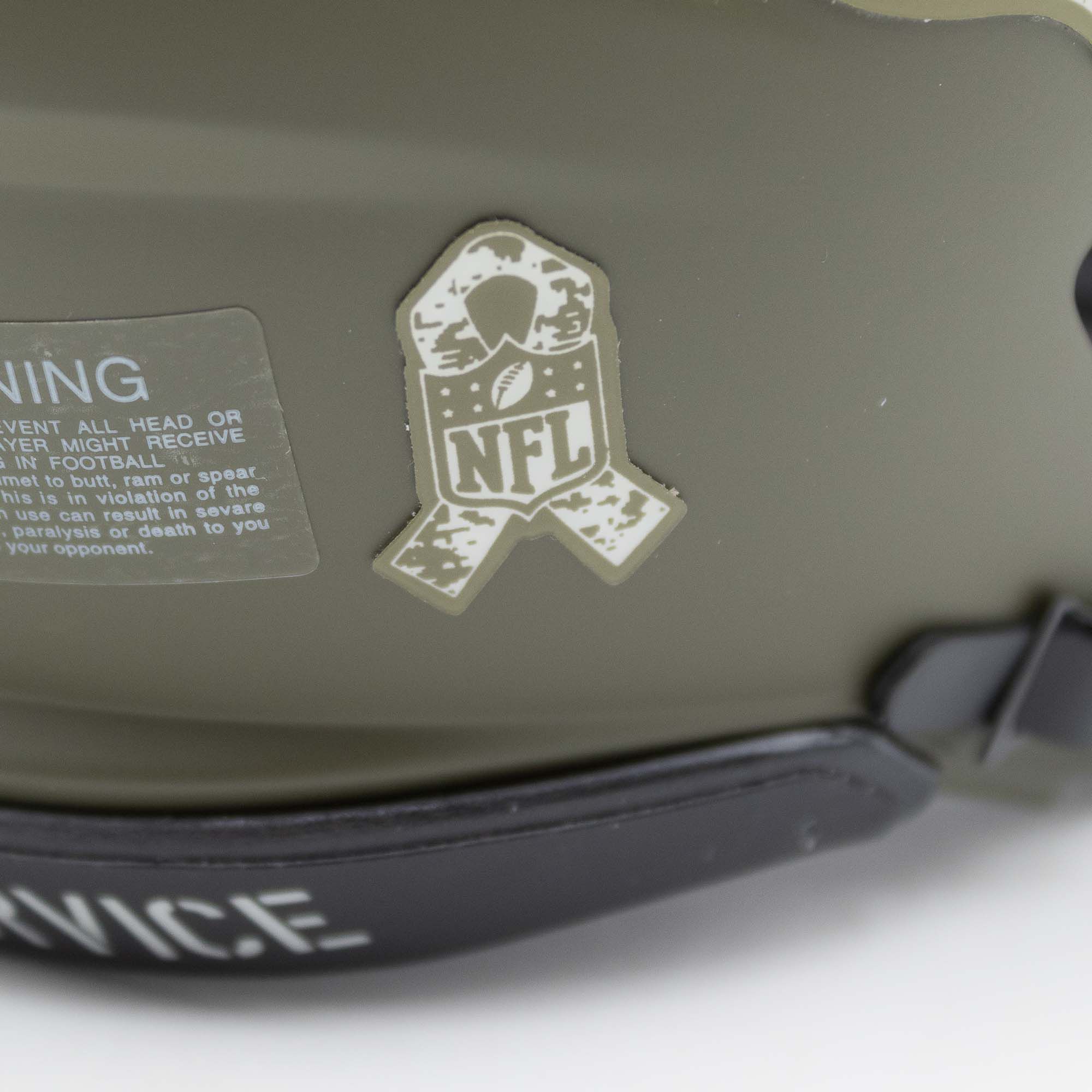 Der Riddell Special Edition Mini Helm ist Teil der offiziellen NFL Salute to Service Kampagne. Mit der Salute to Service Kampagne zollt die NFL dem amerikanischen Militärpersonal ihren Respekt. Alle Lizenzerlöse der Salute to Service Kampagne werden an Non-Profit-Partner der NFL gespendet, darunter: USO, die Pat Tillman Foundation und das Wounded Warrior Project.