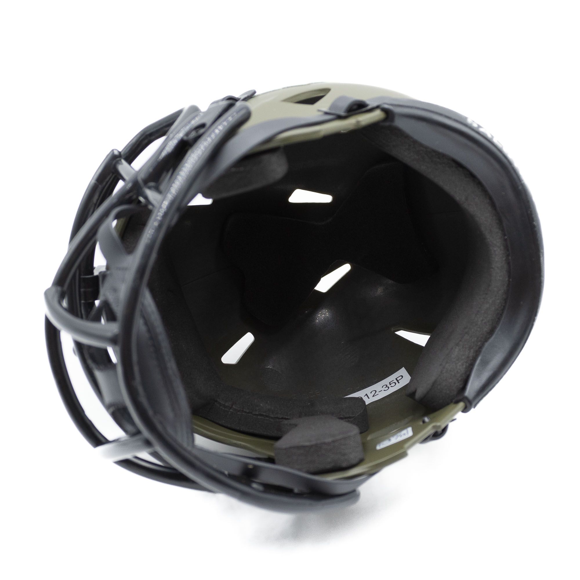 Die einmalige 2022 Salute to Service Alternate Auflage der Riddell NFL Mini Helmets überzeugt mit dem vom Militär inspiriertem Design. Die matt-olivgrüne Farbgebung wird kombiniert mit zweifarbigen Teamlogos. Der kleine Indianapolis Colts Helm kommt Speed-Design mit schwarzer Facemask, Kinnriemen mit 4-Punkt-Halterung und Schaumstoff-Polsterung. Die Rückseite ist zusätzlich mit der amerikanischen Staatsflagge und der Salute to Service Schleife dekoriert. Die Riddell NFL American Football Mini Helme bestehen komplett aus Kunststoff und sind detailgetreue 1:2 Miniaturen der originalen Footballhelme. Alle Logos und Dekoelemente sind aufgeklebt.