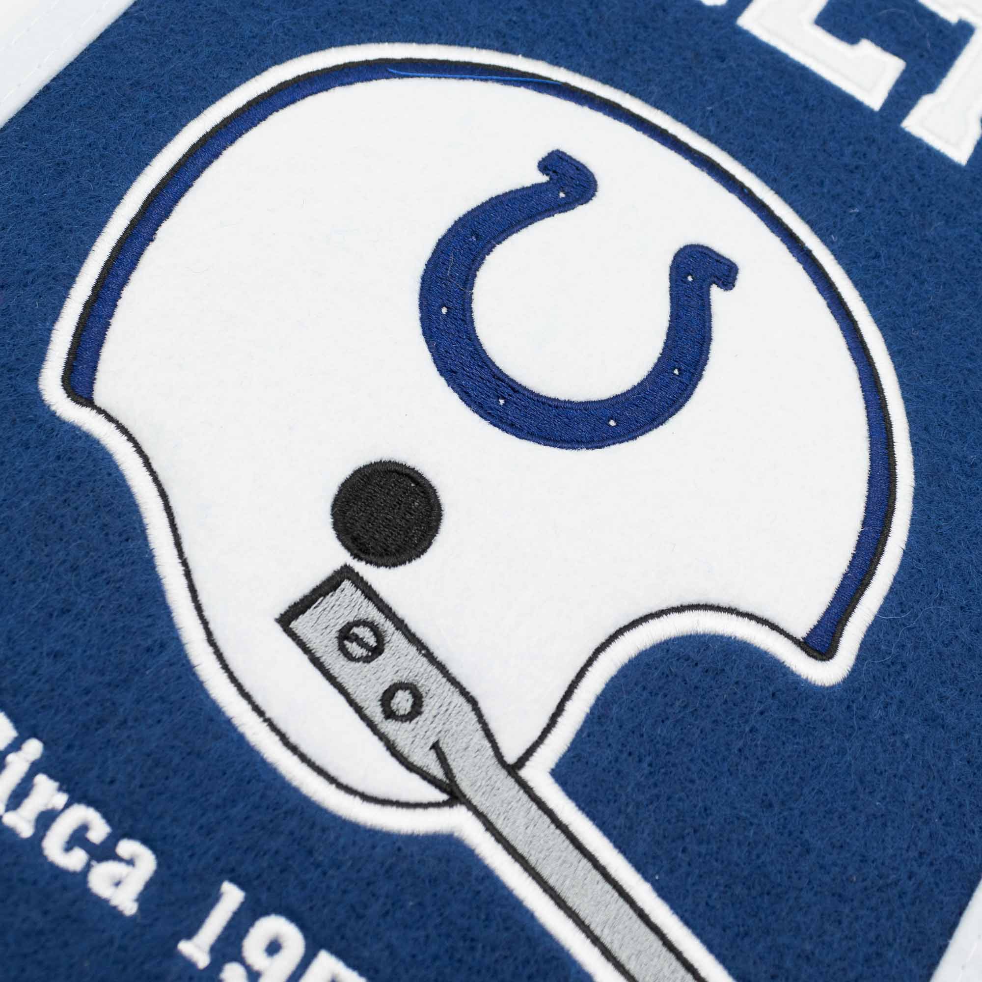 Echter Wollfilz Banner mit hochwertig aufgestickten Logos und Schriftzügen aus der Fanatics WinCraft Collection im Logo Evolution Design. Das ganz besondere Dekoelement für jeden Indianapolis Colts Fan und Sammler. Mit dieser Premium Wanddeko macht Dein Football-Fan-Cave richtig was her.