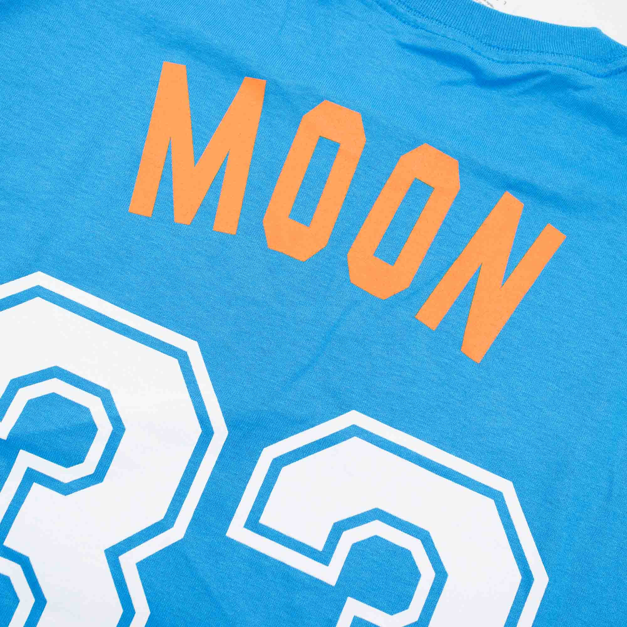 Offiziell lizensiertes Indians T-Shirt mit aufgedruckten Namen und Nummer im Trikot Design (Screen-Printed). Flint Tropics Legende Jackie Moon wird in Semi-Pro von Will Ferrell gespielt.