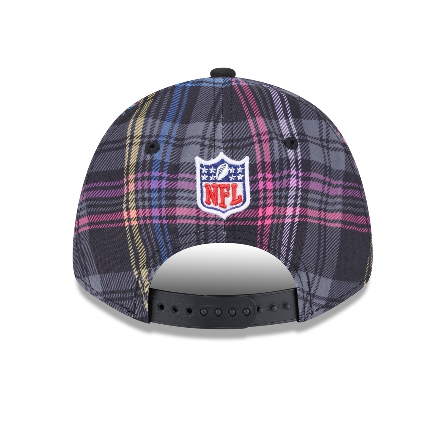 Unterstütze den weltweiten Kampf gegen Krebs mit der offiziellen New Era 2024 NFL Crucial Catch On-Field Kappe. Diese NFL Cap mit verstellbarem Verschluss wird während der 2024-25 Crucial Catch Kampagne im Oktober an den NFL-Seitenlinien getragen. Die Cap ist auf der Vorderseite hochwertig mit dem bunt abgesetzten Jacksonville Jaguars Teamlogo bestickt. Die rechte Capseite ist mit dem CRUCIAL CATCH - INTERCEPT CANCER Patch bestickt. Die Rückseite ziert das aufgestickte NFL Logo. Das Sublimierte Karo-Design auf allen sechs Panels in den typischen Crucial Catch Farben sorgt für einen einzigartigen Look.