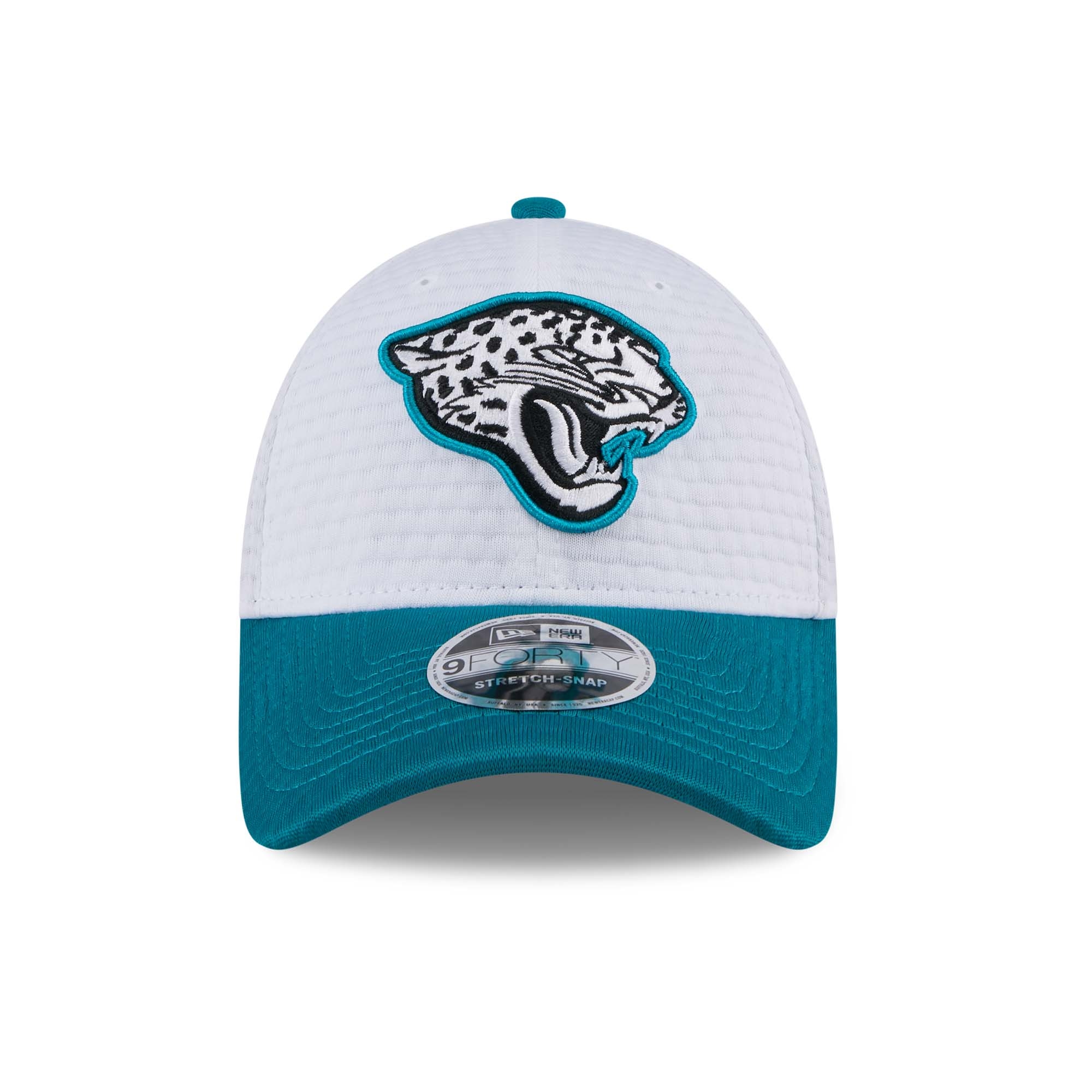 New Era American Football Cap von deinen Jacksonville Jaguars im Stretch-Snap 9FORTY Cap Style aus der offiziellen 2024 NFL Training Camp Kollektion.