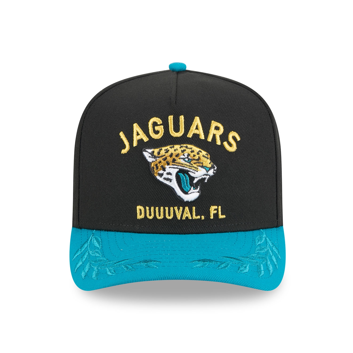 New Era American Football Cap von deinen Jacksonville Jaguars im 9FIFTY A-Frame Snapback Style aus der offiziellen 2025 NFL Draft Kollektion.