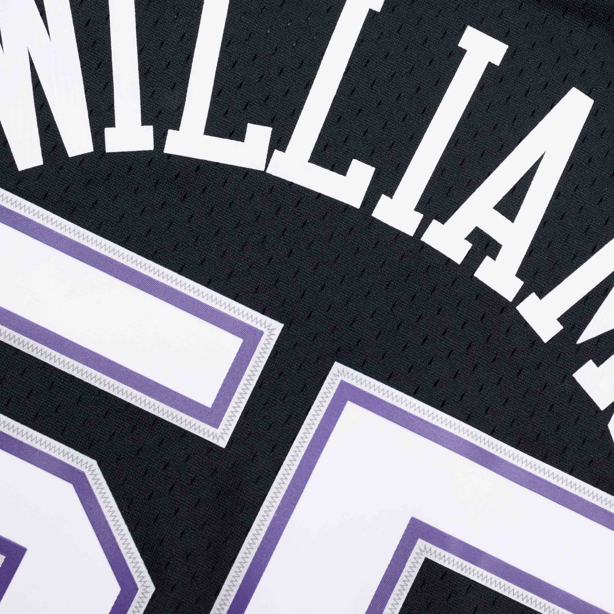 Herren Mitchell & Ness Swingman Basketball Trikot von Jason "White Chocolate" Williams, Legende der Sacramento Kings aus der Saison 2000-01.