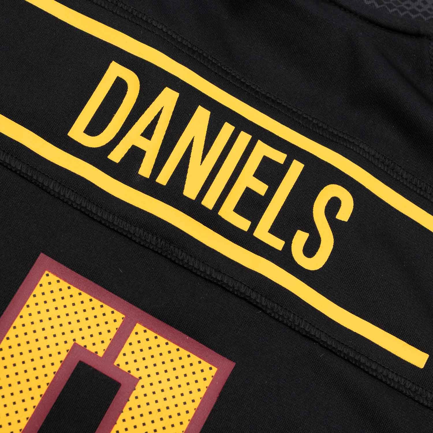 Das NFL-Trikot hat die Nummer 5 und den Spielernamen DANIELS aufgedruckt. Das NFL-Shield am Kragen ist genauso wie das Equipment-Label am Saum aufgenäht. Damit auch die Kleinsten den größten Support leisten können, ist dieses Football Trikot genau das richtige für jeden jungen Football Fan.