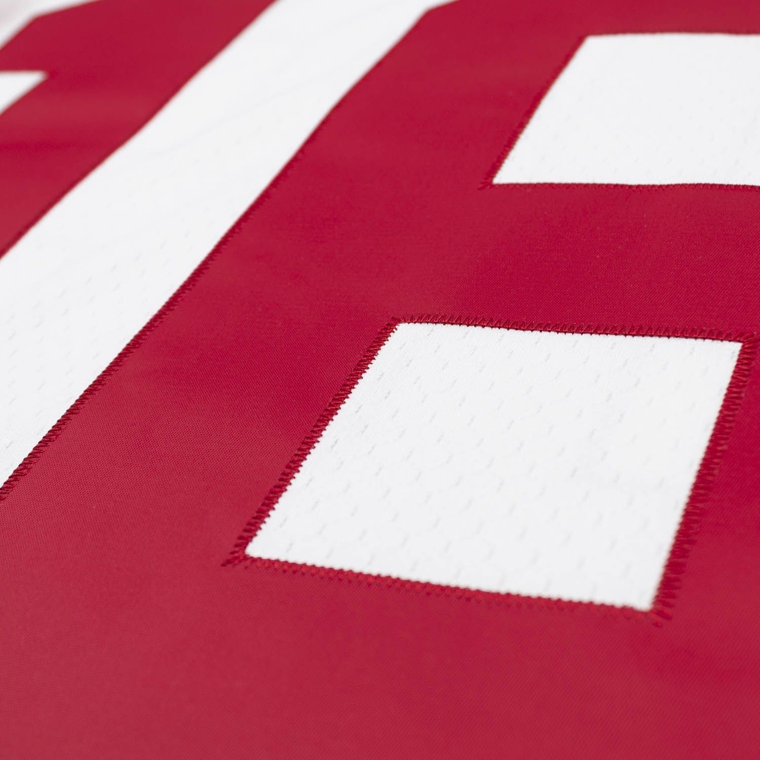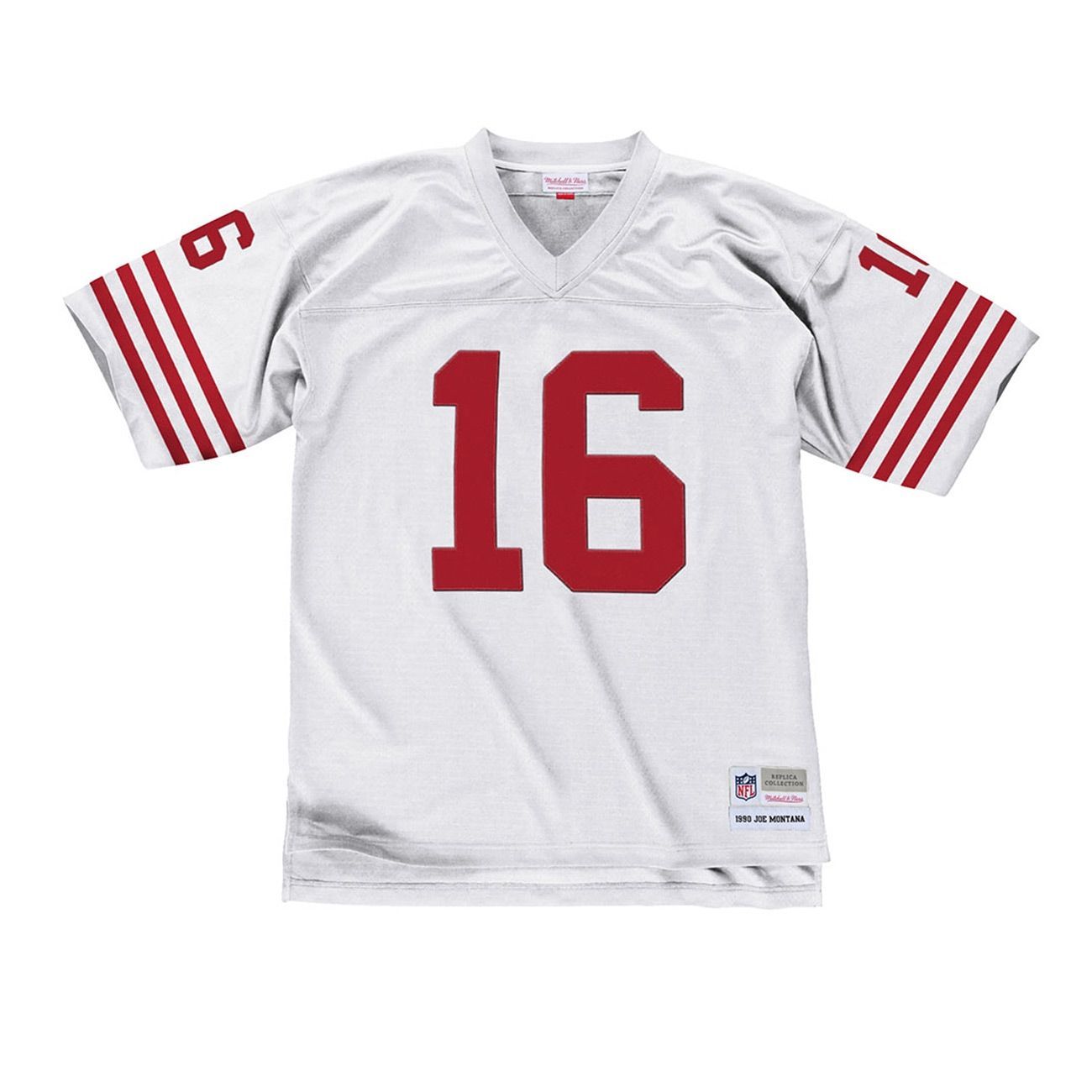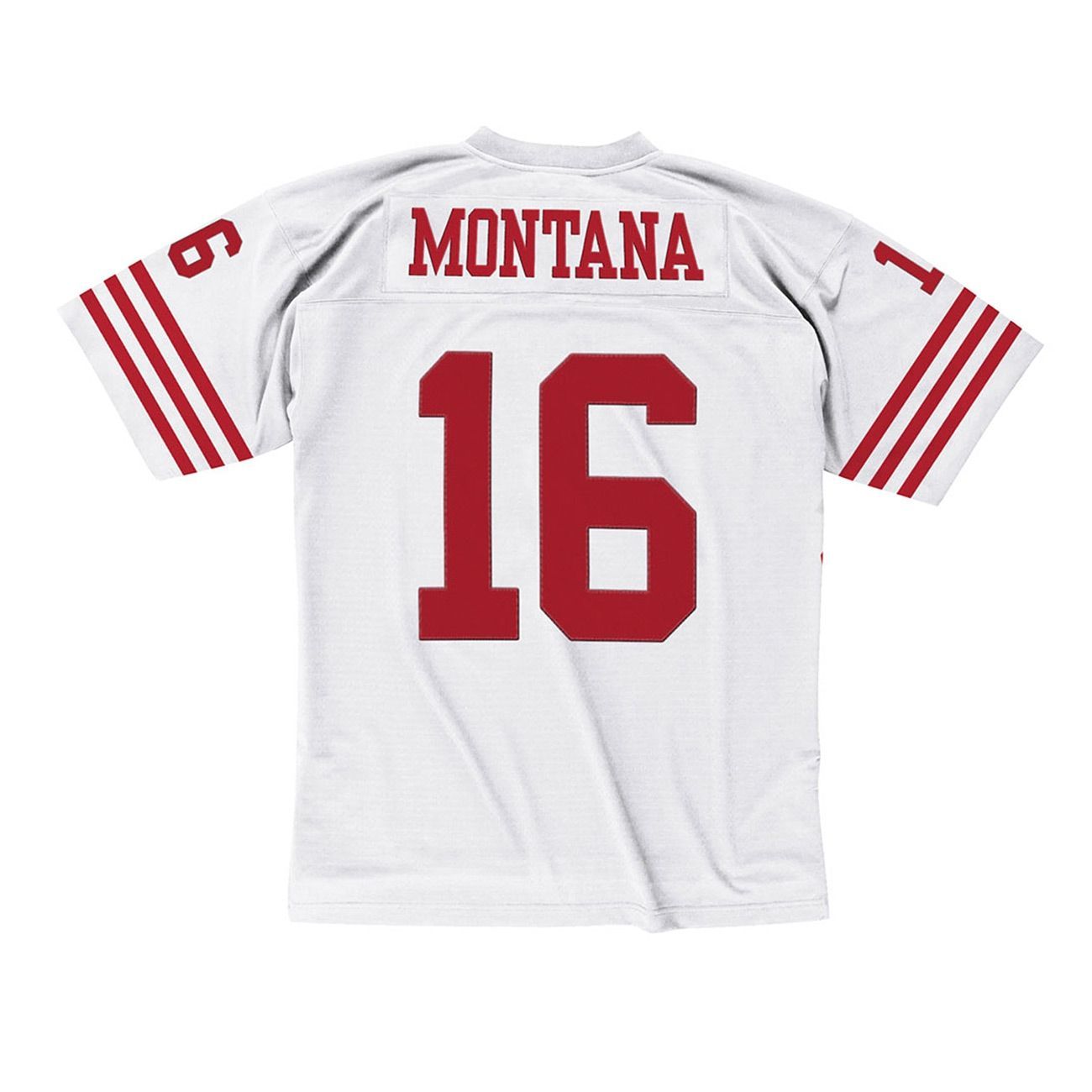 Mitchell & Ness NFL Herren American Football Trikot von Joe Montana, Quarterback der San Francisco 49ers (1979-1992) #16 im Legacy Throwback Design.