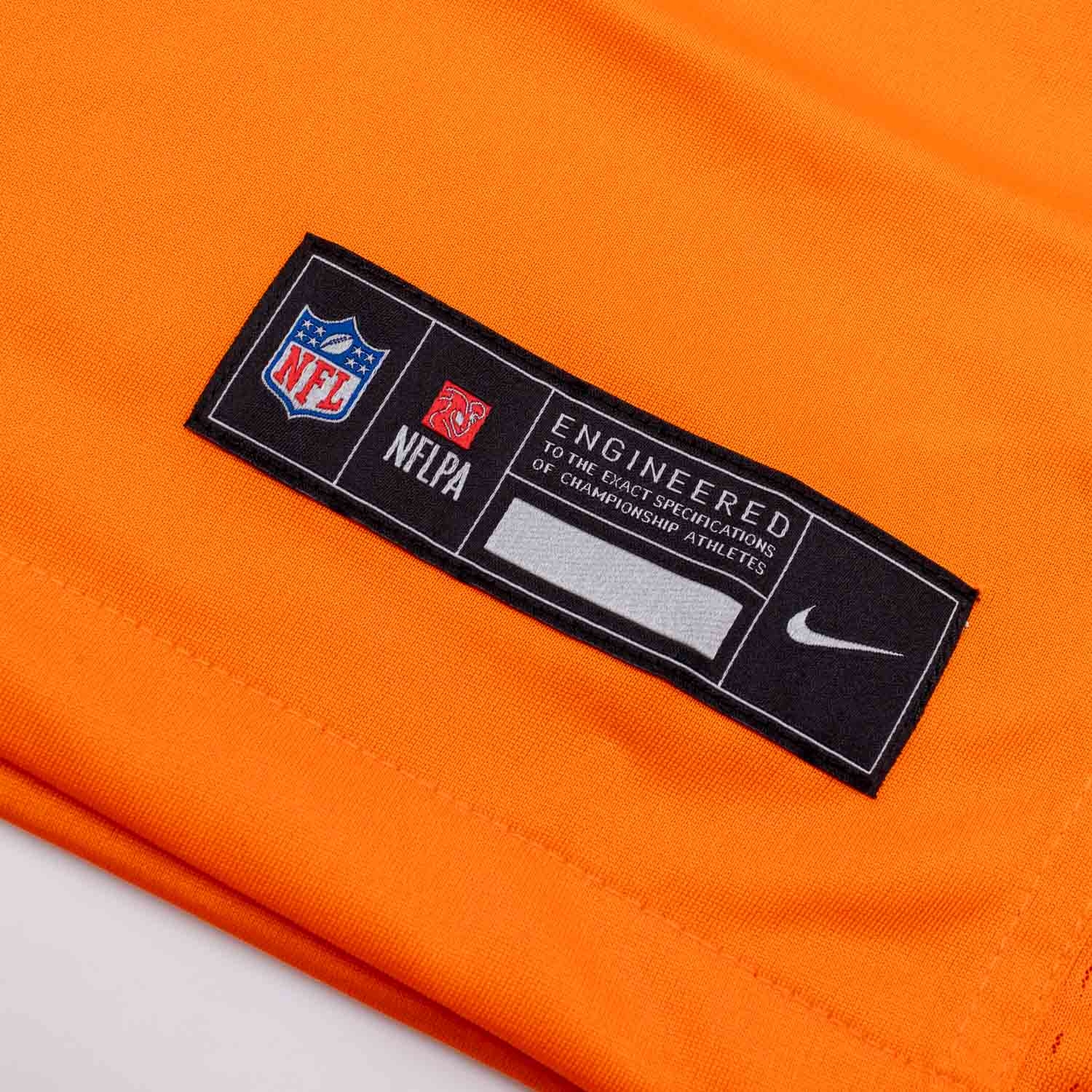 - Authentisches Design: Das Trikot spiegelt das offizielle Design der original NFL-Spieltrikots wider, inklusive des NFL-Shields am Kragen und des Equipment-Labels am Saum. Die ikonischen Denver Broncos Streifen auf den Ärmeln runden den Look perfekt ab.