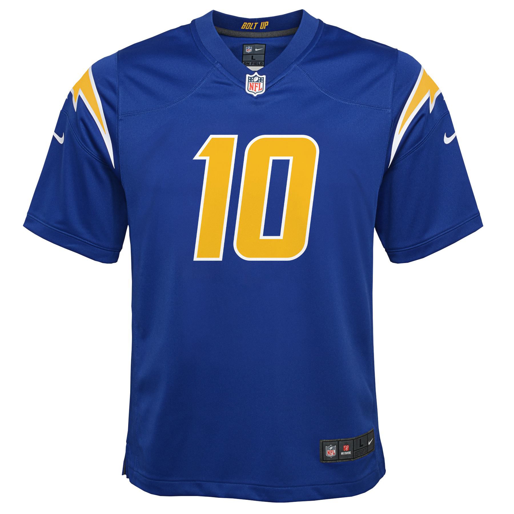 Mit den Nike Color Rush Los Angeles Chargers NFL Kindertrikots können auch die jüngeren Fans ihre Idole unterstützen! Alle Logos, Ziffern und Buchstaben sind hochwertig aufgedruckt (Screen-Printed) und entsprechen dem offiziellen Design der original NFL-Spieltrikots, nur in kleinerer Ausführung. Das NFL-Trikot hat die Nummer 10 und den Spielernamen HERBERT aufgedruckt. Das NFL-Shield am Kragen ist genauso wie das Equipment-Label am Saum aufgenäht. Damit auch die Kleinsten den größten Support leisten können, ist dieses Football Trikot genau das richtige für jeden jungen Football Fan.