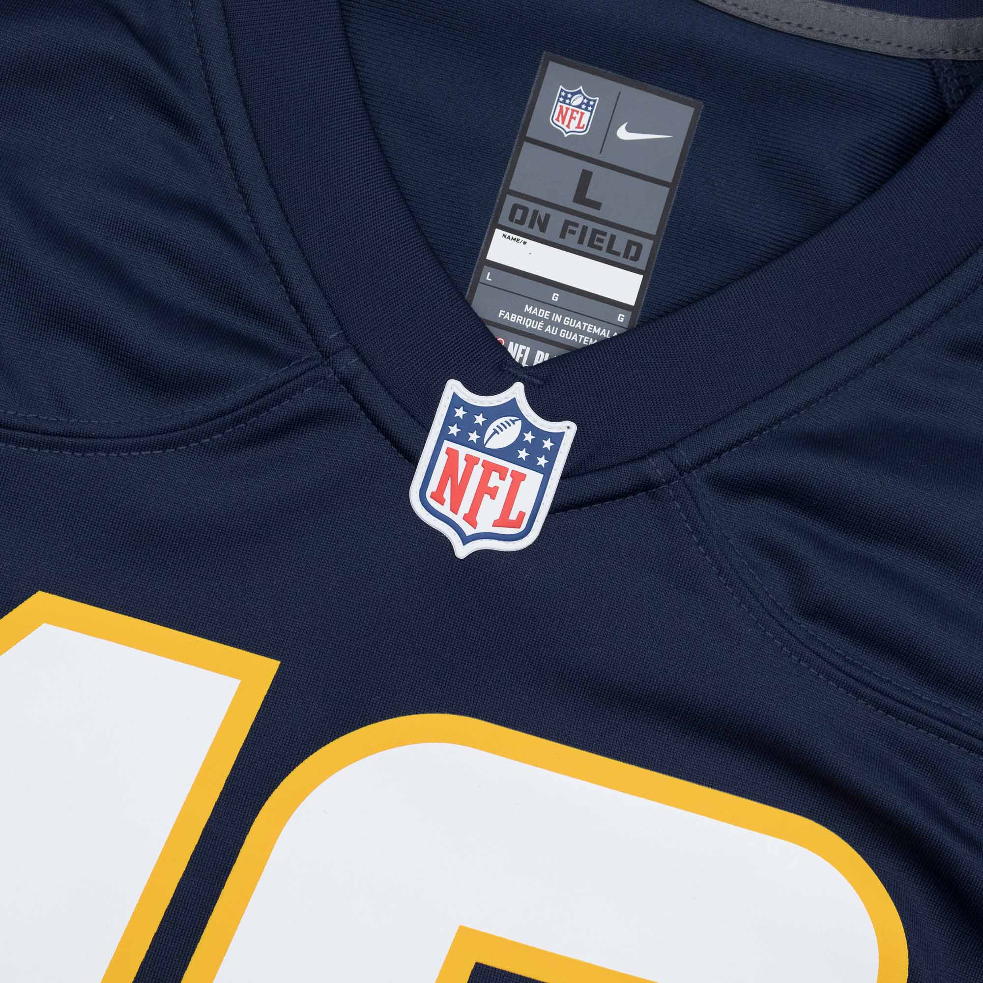 Die Game NFL Trikots sind in hochwertiger Nike-Qualität produziert und sind ein absolutes Must-Have für jeden passionierten American Football Fan. Dieses Los Angeles Chargers NFL Fan-Trikot besteht zu 100% aus Polyester. Alle Logos, Ziffern und Buchstaben sind hochwertig aufgedruckt (Screen-Printed) und entsprechen dem offiziellen Design der original NFL-Spieltrikots. Das Trikot hat die Nummer 10 und den Spielernamen HERBERT aufgedruckt, das Nameplate ist sogar extra aufgenäht. Das NFL-Shield am Kragen ist genauso wie das Equipment-Label am Saum aufgenäht. Zusätzlich ist der Kragen mit den dem BOLT UP Schriftzug bedruckt. Der Nackenbereich ohne störendes Etikett sorgt für optimierten Tragekomfort. Egal ob am Spieltag oder im Alltag - Mit deinem Justin Herbert LA Chargers Trikot zeigst Du ganz klar welches Team Du unterstützt: Bolt Up!