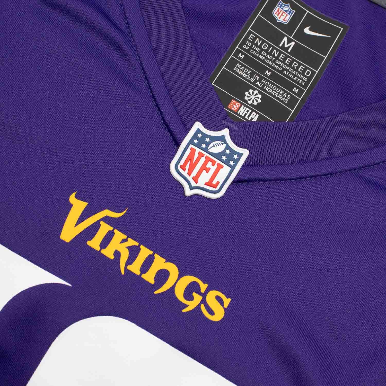 - Klassisches Vikings-Farbschema: Lila Grundfarbe mit weißen und goldenen Ärmelstreifen