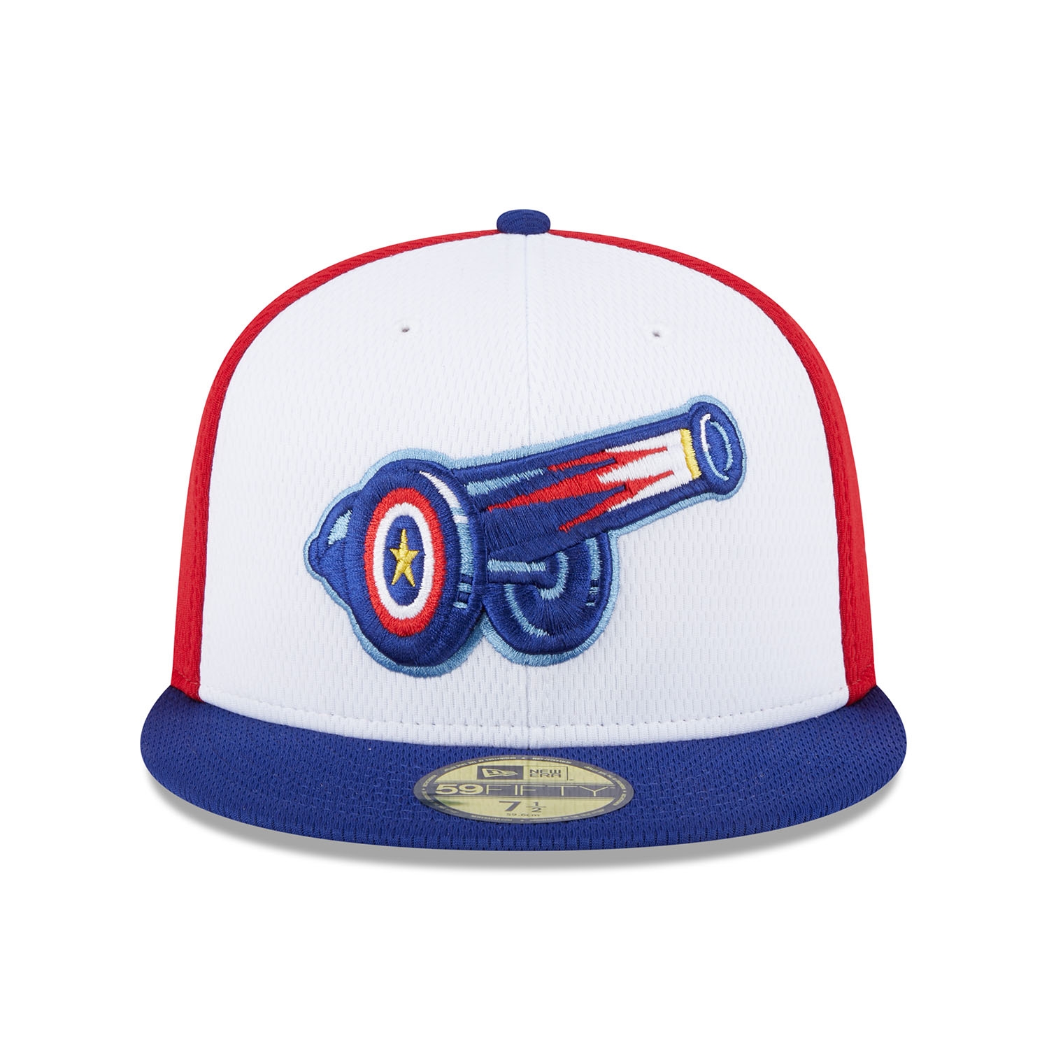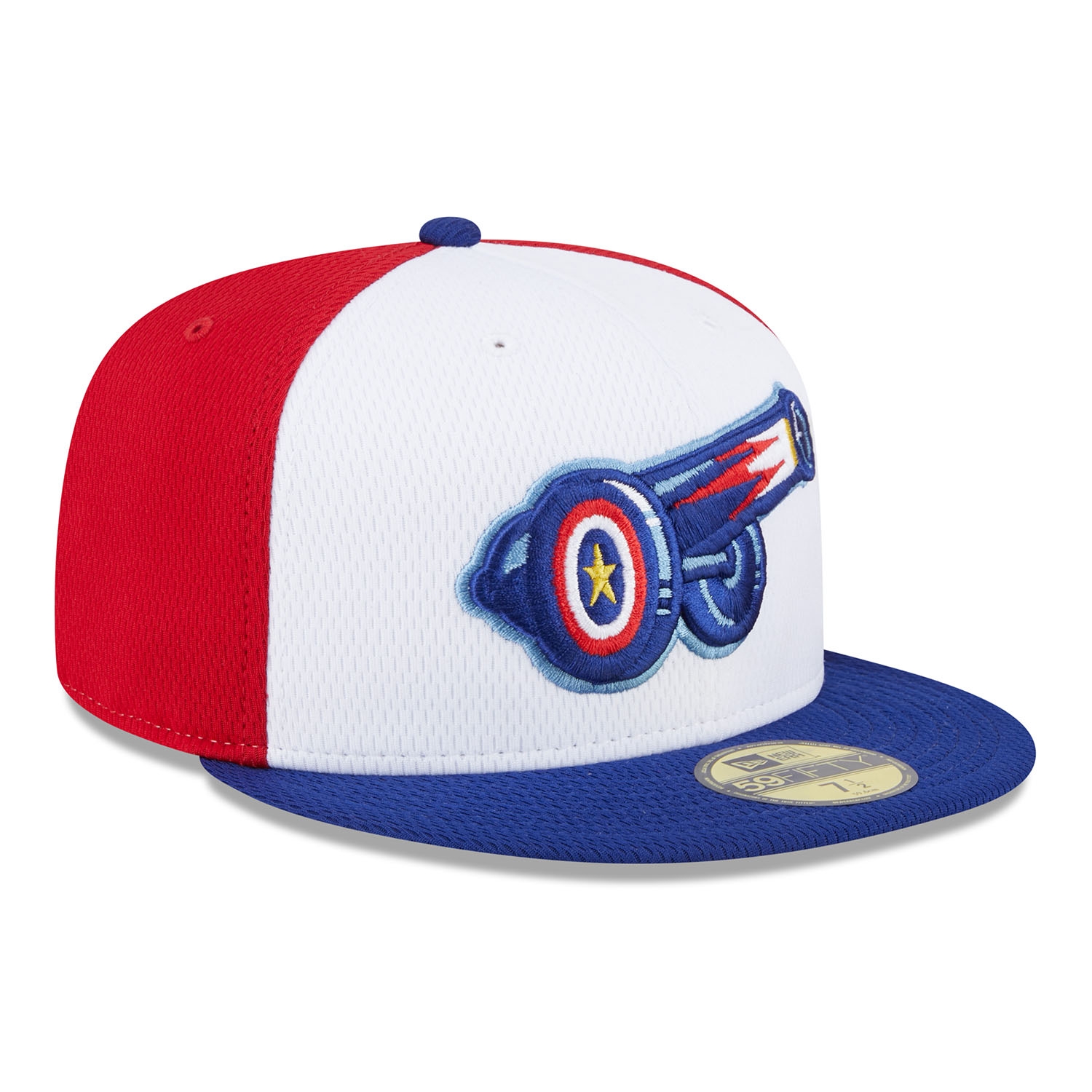 Kannapolis Cannon Ballers MiLB Batting Practice Authentic 59FIFTY Fitted Cap Rot/Weiß