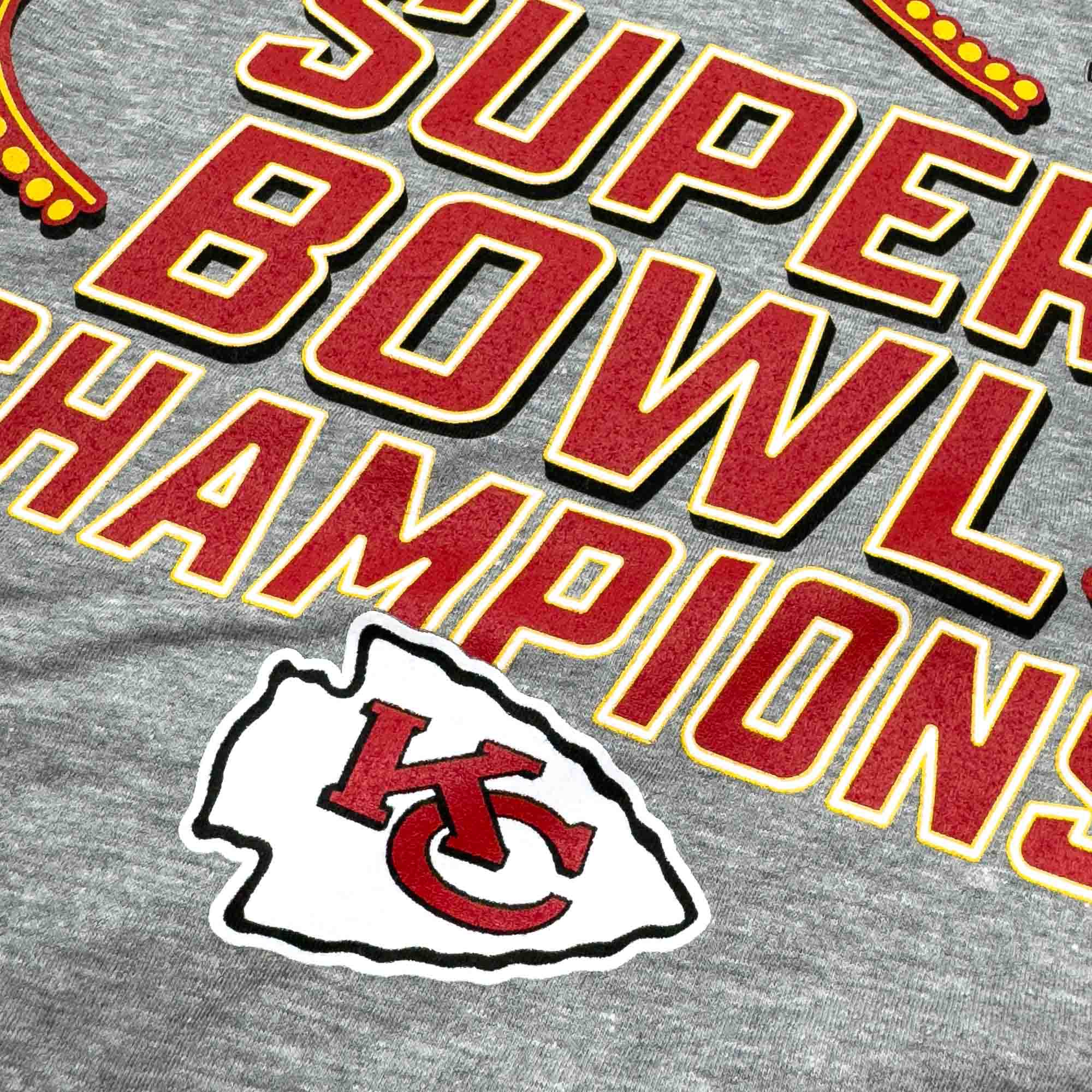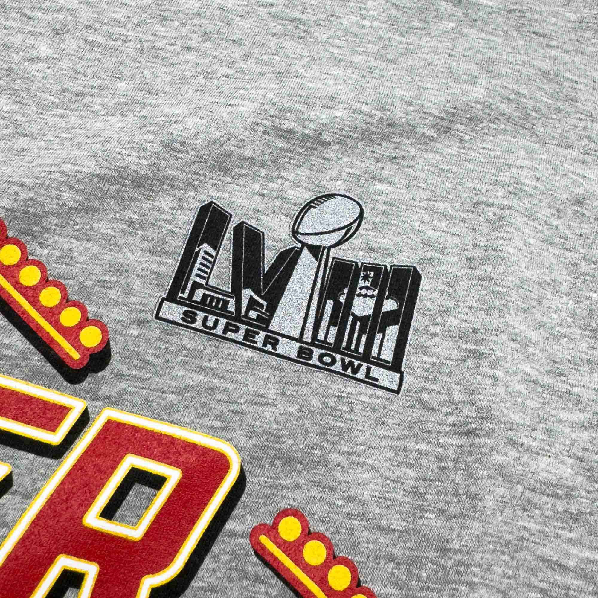 Zelebriere den 2024 Super Bowl Champ mit dem offiziellen Locker Room T-Shirt vom NFL-Ausrüster Nike. Das NFL T-Shirt ist auf der Vorderseite mit dem Super Bowl Champions Schriftzug, dem Teamlogo, dem Super Bowl LVIII Logo und dem Team Schriftzug bedruckt, genau in dem Design, welches die Spieler zum Feiern auf dem Spielfeld getragen haben. Zusätzlich ist der linke Ärmel mit dem Nike Swoosh Logo dekoriert.