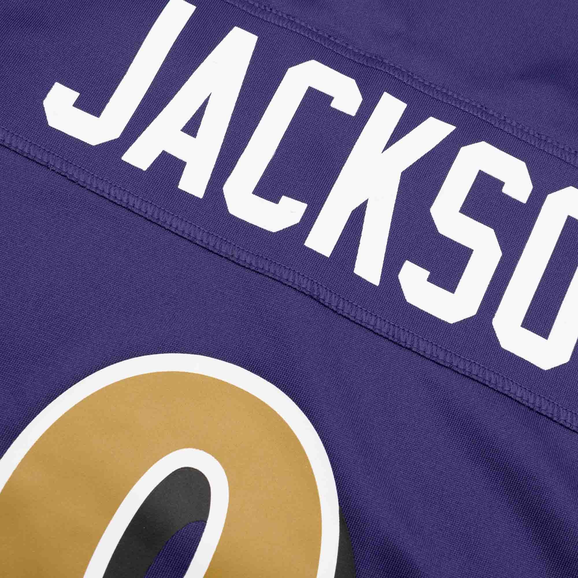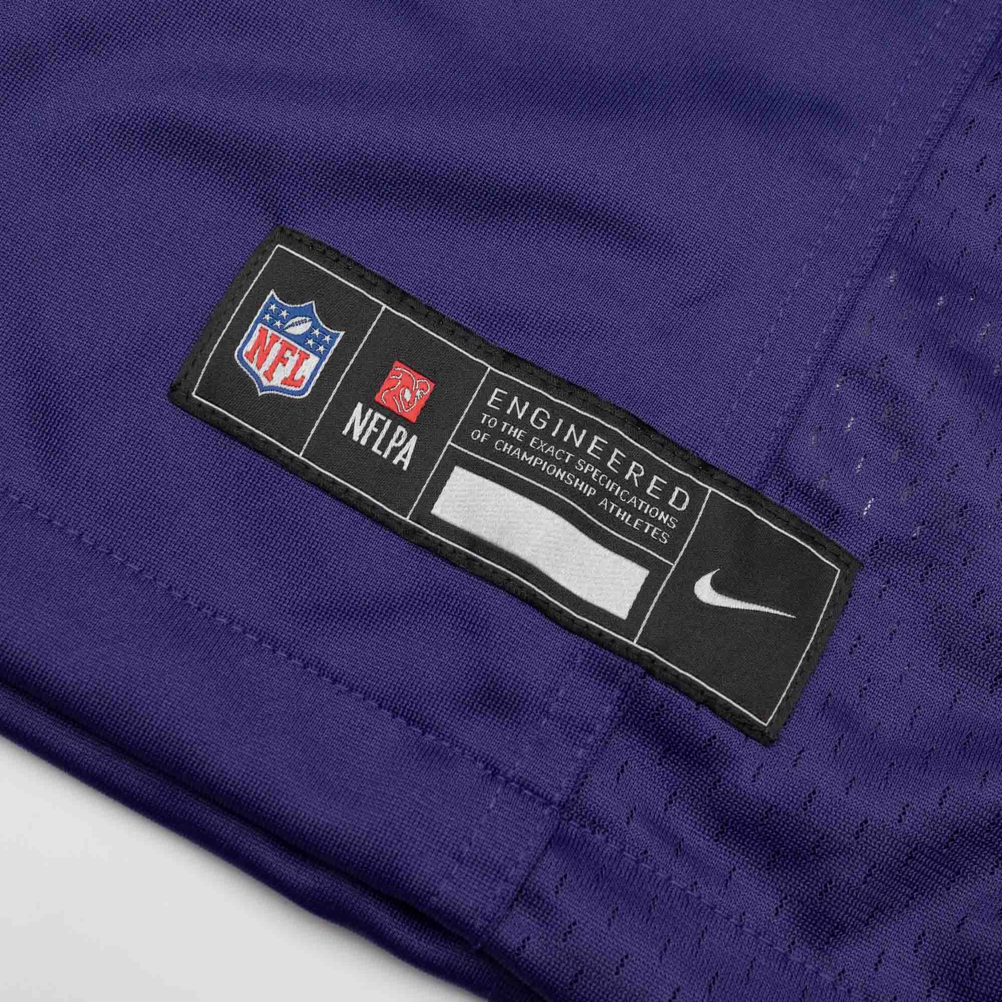 Die Game NFL Trikots sind in hochwertiger Nike-Qualität produziert und sind ein absolutes Must-Have für jeden passionierten American Football Fan. Dieses Baltimore Ravens NFL Fan-Trikot besteht zu 100% aus Performance Polyester mit recycelten Fasern aus der Nike Move to Zero Kollektion. Alle Logos, Ziffern und Buchstaben sind hochwertig aufgedruckt (Screen-Printed) und entsprechen dem offiziellen Design der original NFL-Spieltrikots. Das Trikot hat die Nummer 8 und den Spielernamen JACKSON aufgedruckt, das Nameplate ist sogar extra aufgenäht. Das NFL-Shield am Kragen ist genauso wie das Equipment-Label am Saum aufgenäht.