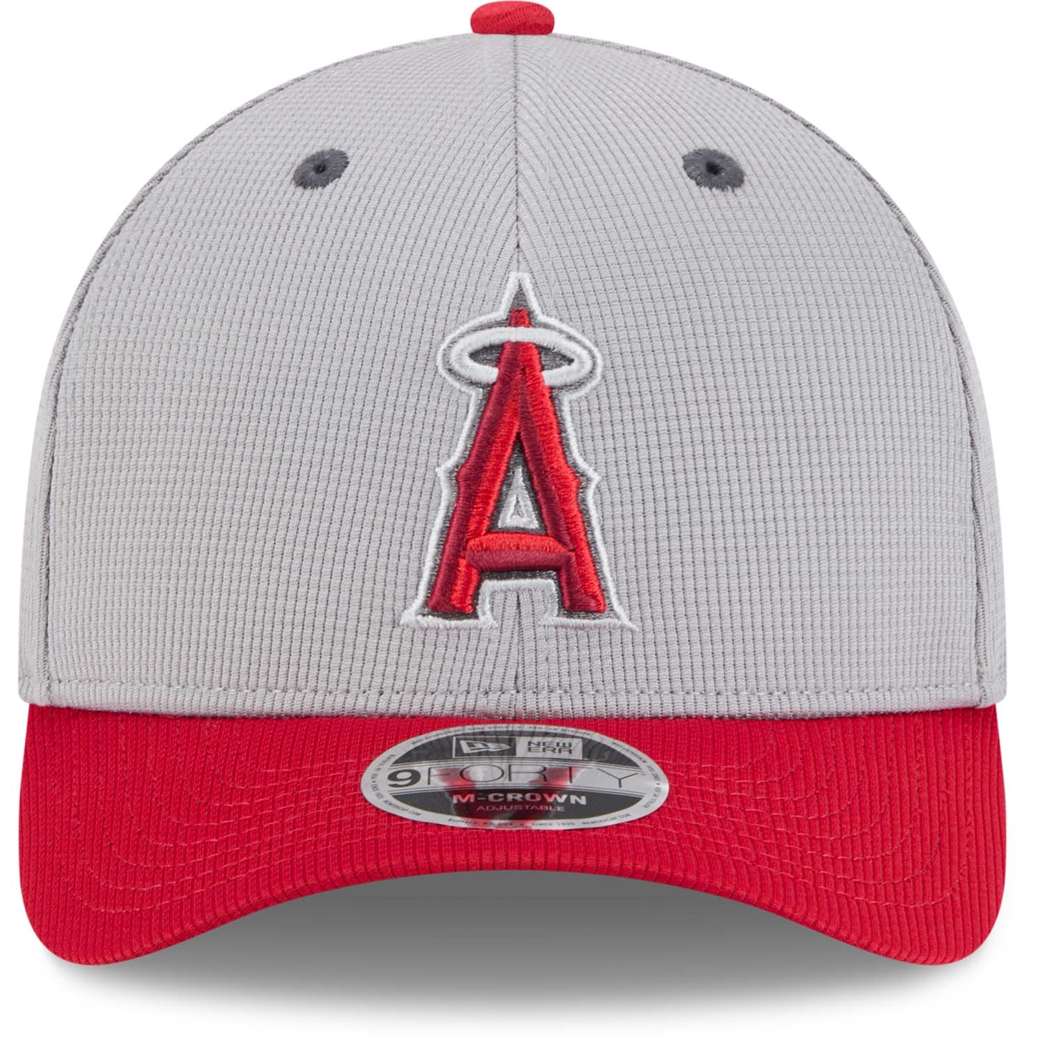 New Era Baseball Adjustable Snapback Cap von deinen Los Angeles Angels im 9FORTY M-Crown Style aus der grauen Colorway 2025 MLB Batting Practice Kollektion.