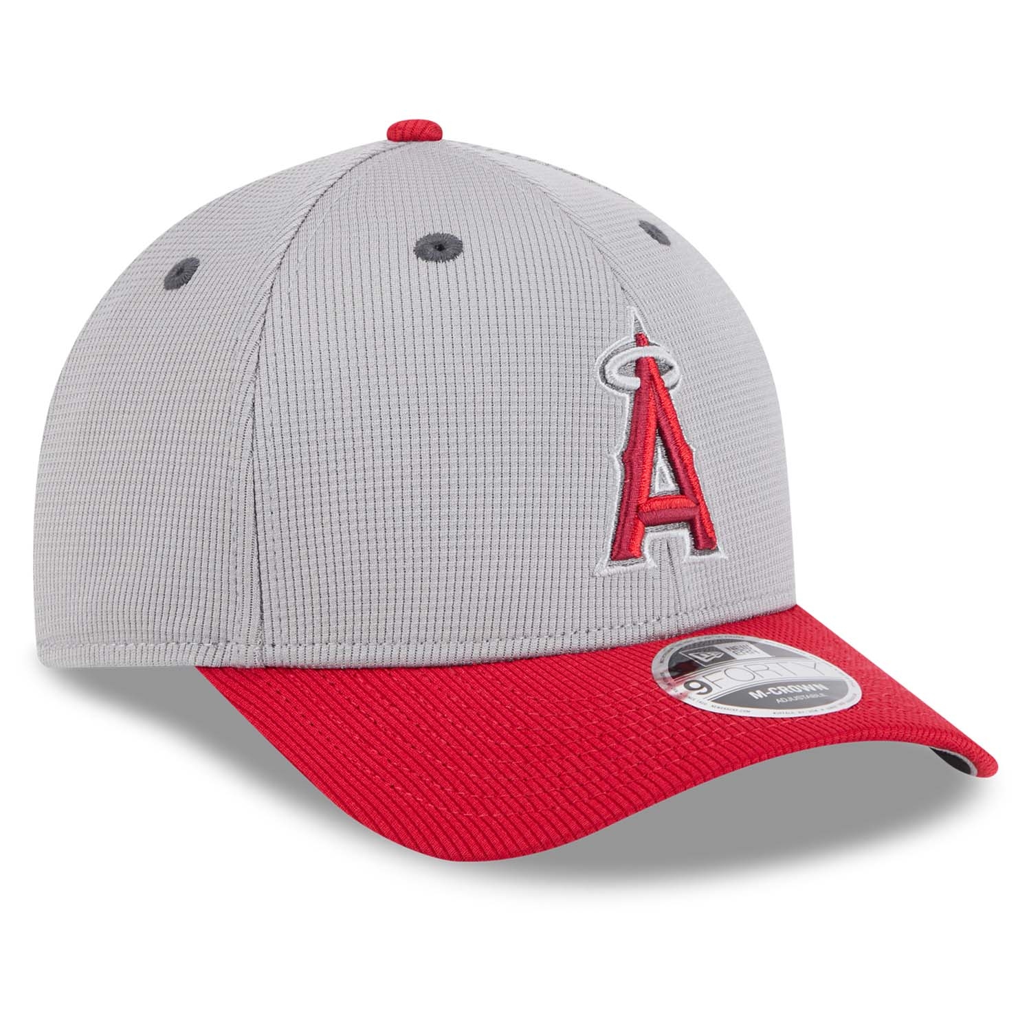 New Era Baseball Adjustable Snapback Cap im 9FORTY M-Crown Style von deinen Los Angeles Angels aus der grauen Colorway 2025 MLB Batting Practice Kollektion.