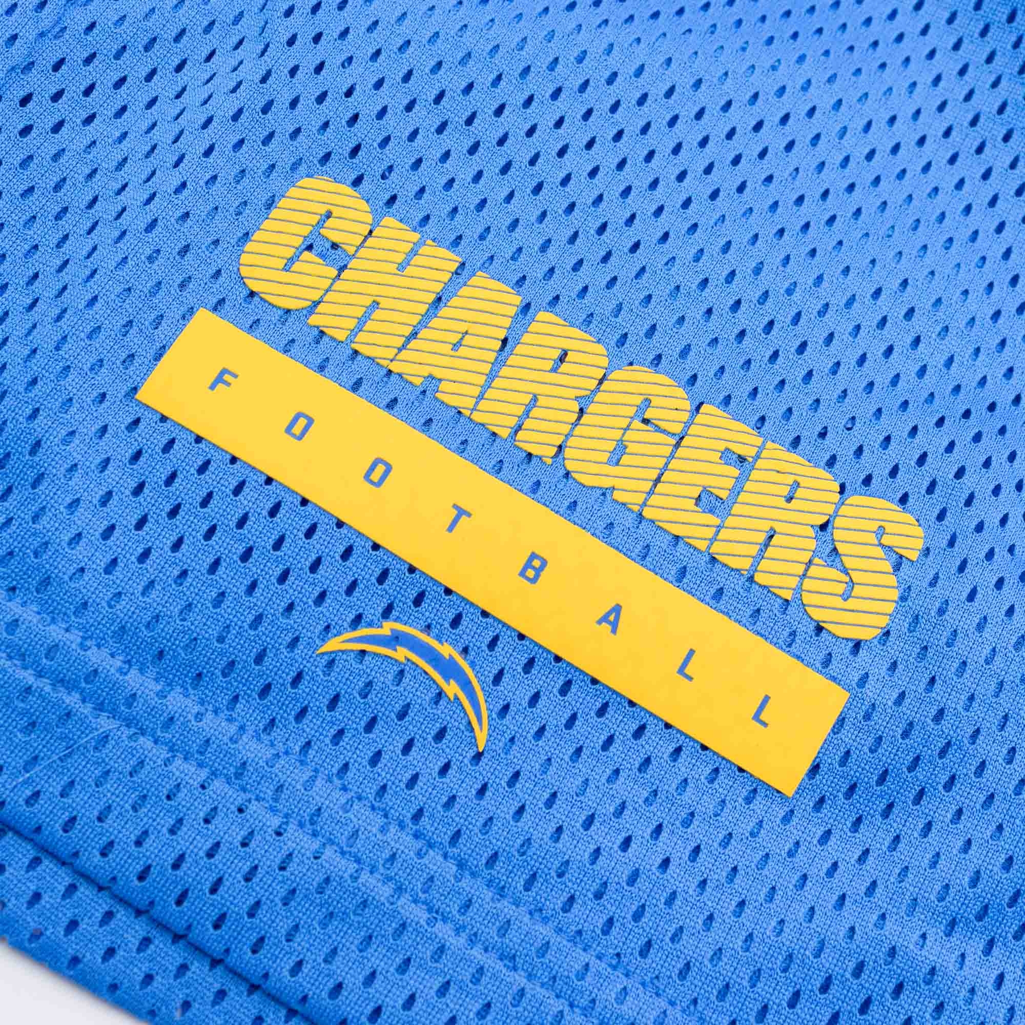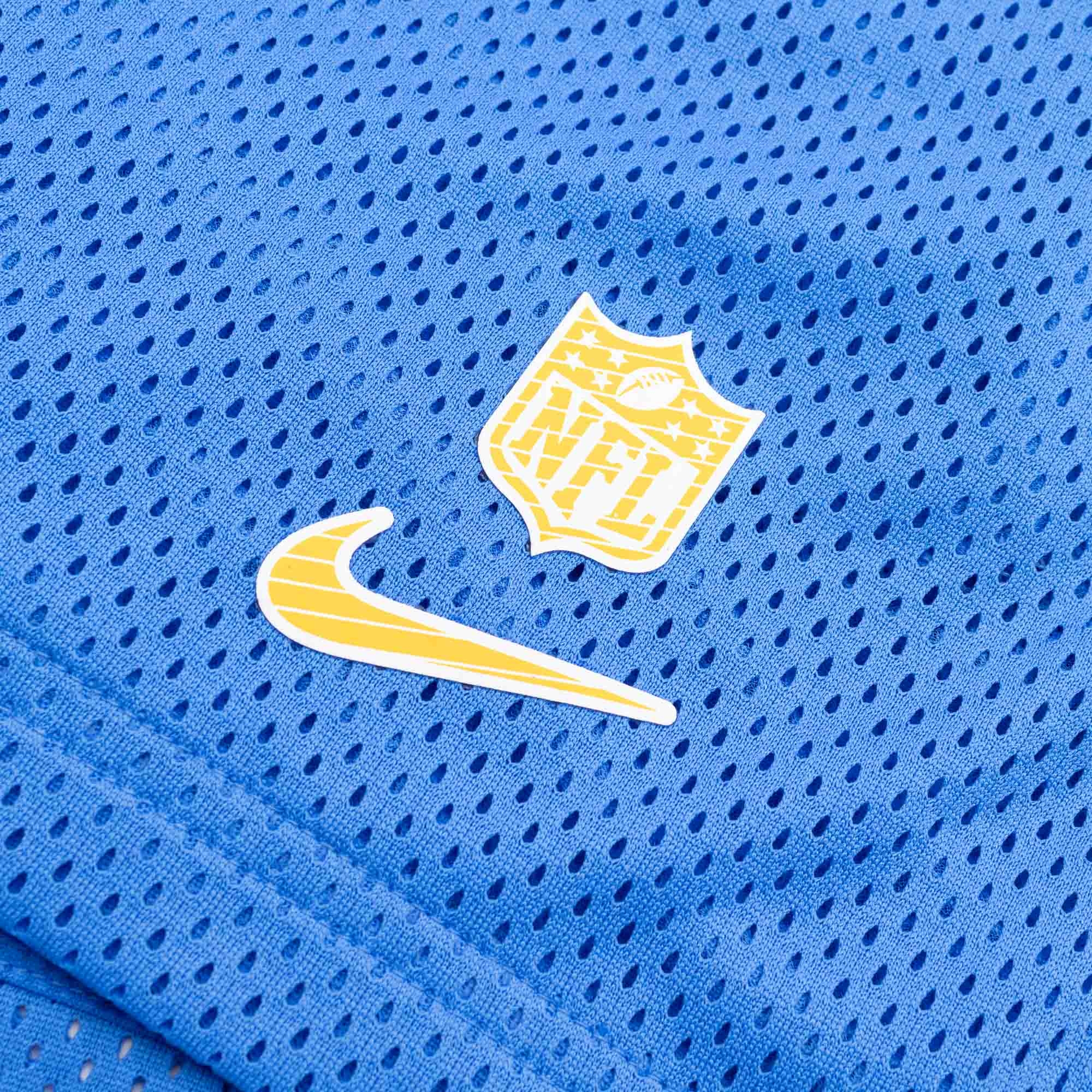 Nike Herren American Football Dri-FIT Mesh Shorts von deinen Los Angeles Chargers im offiziellen 2024 NFL On-Field Sideline Design.