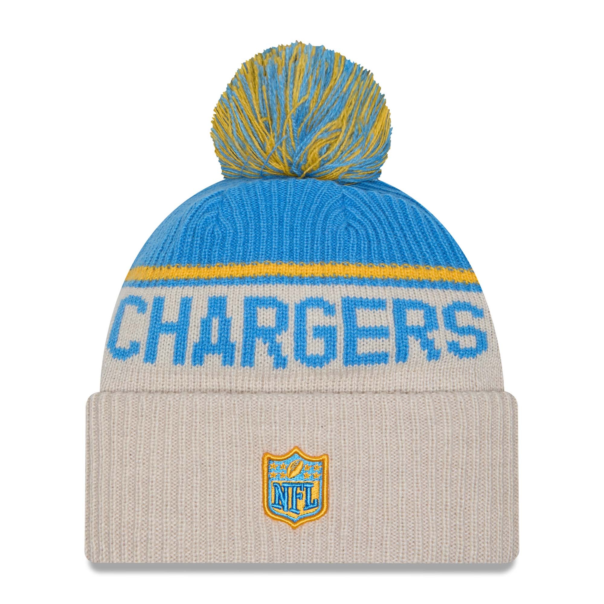 New Era American Football Pudelmütze von deinen Los Angeles Chargers im Historic Throwback Style aus der offiziellen 2024 NFL Sideline Kollektion.