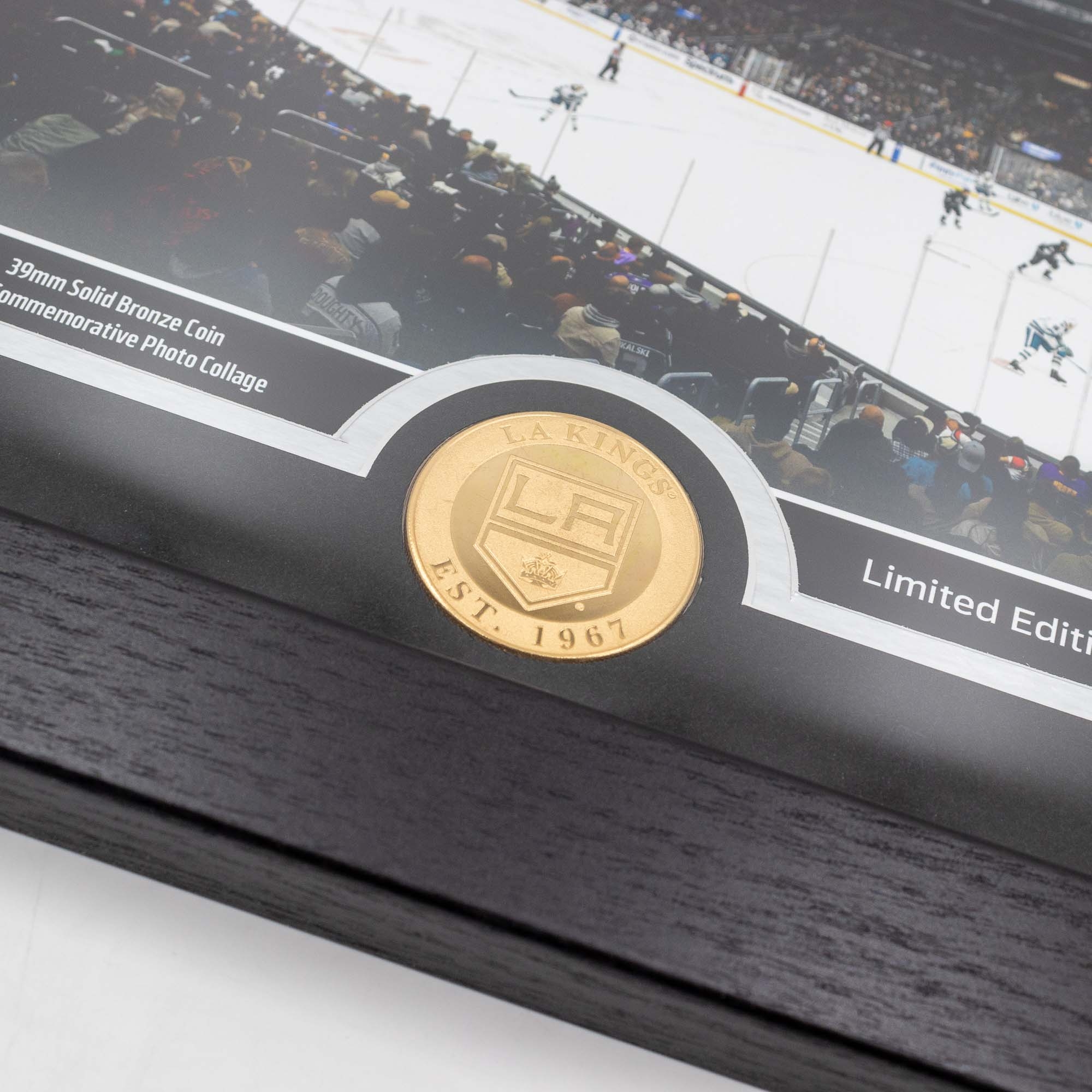 Highland Mint NHL gerahmtes Bild von deinen Los Angeles Kings mit Stadionhintergrund, geprägter Bronzemünze und den Stanley Cup Championships. Limitierte Auflage zu 5.000 Stück.