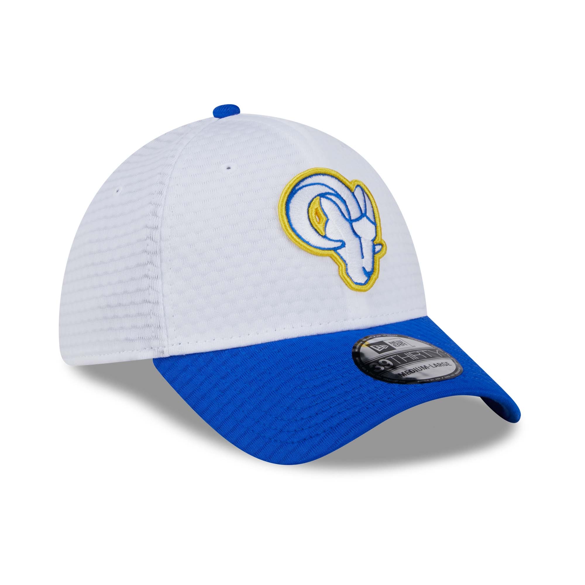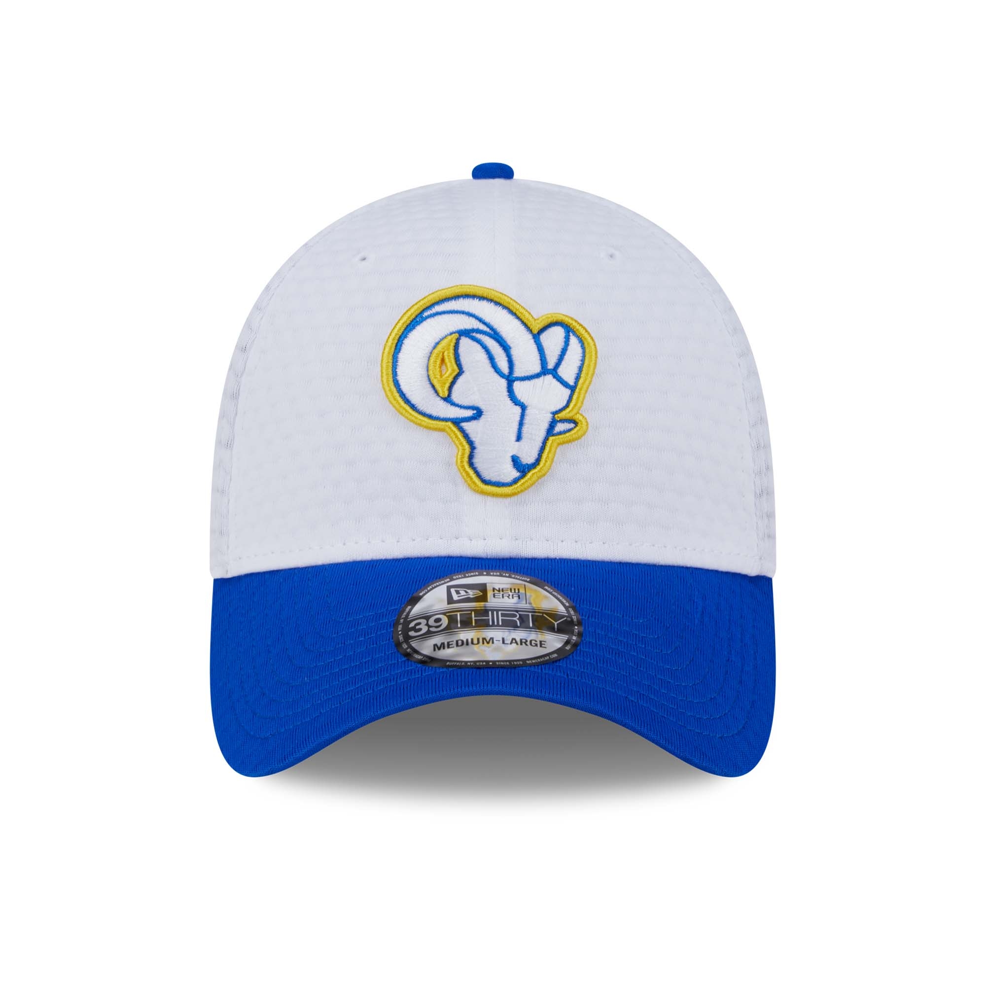 New Era American Football Cap von deinen Los Angeles Rams im Stretch-Fit 39THIRTY Style aus der offiziellen 2024 NFL Training Camp Kollektion.