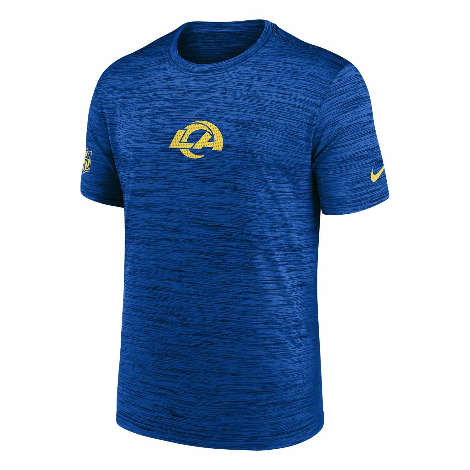 Nike Herren Velocity Dri-FIT Performance T-Shirt von deinen Los Angeles Rams aus der offiziellen 2025 NFL On-Field Sideline Kollektion.