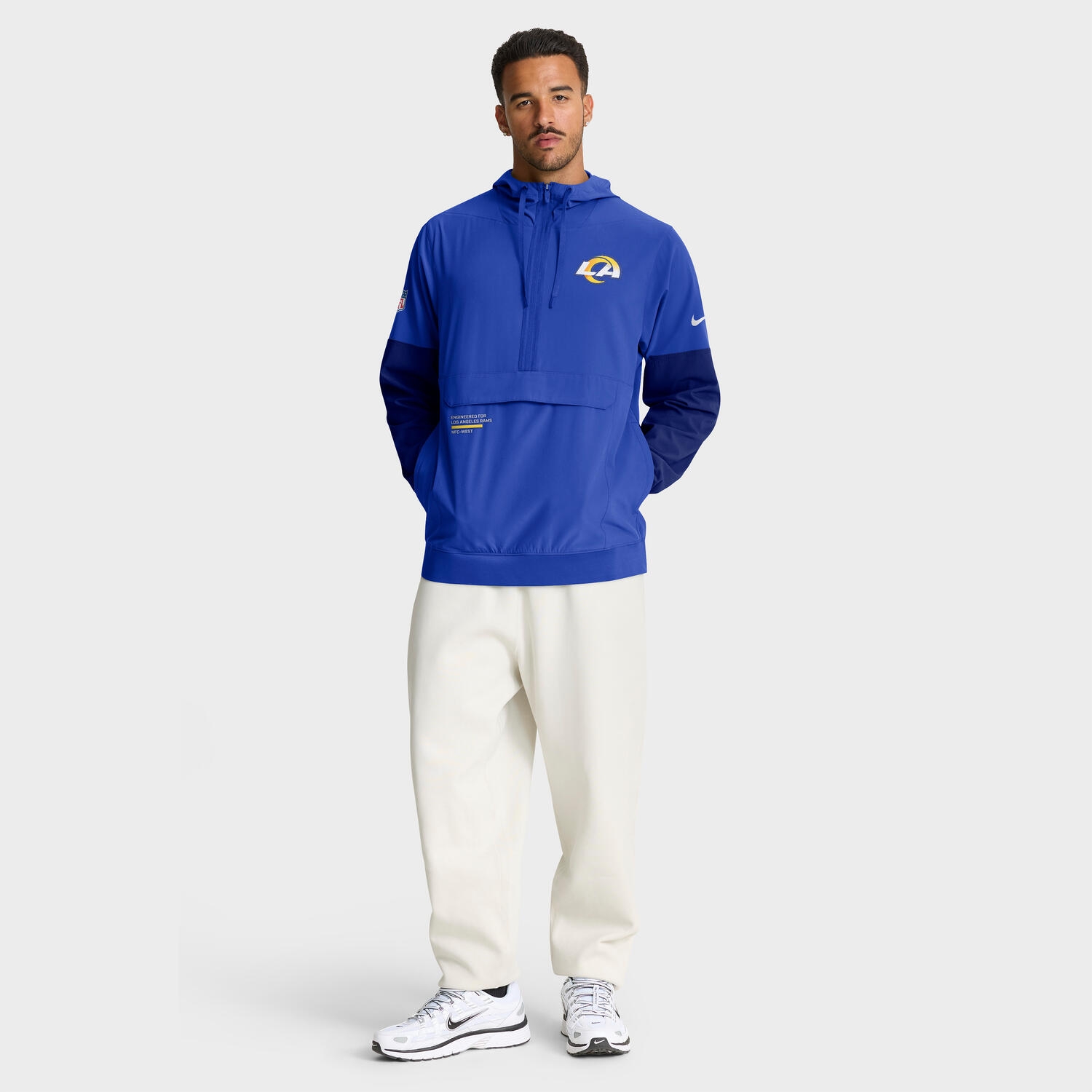 Nike Herren NFL American Football 1/2-Zip Anorak Jacke von den Los Angeles Rams aus der offiziellen 2025 NFL On-Field Sideline Kollektion.