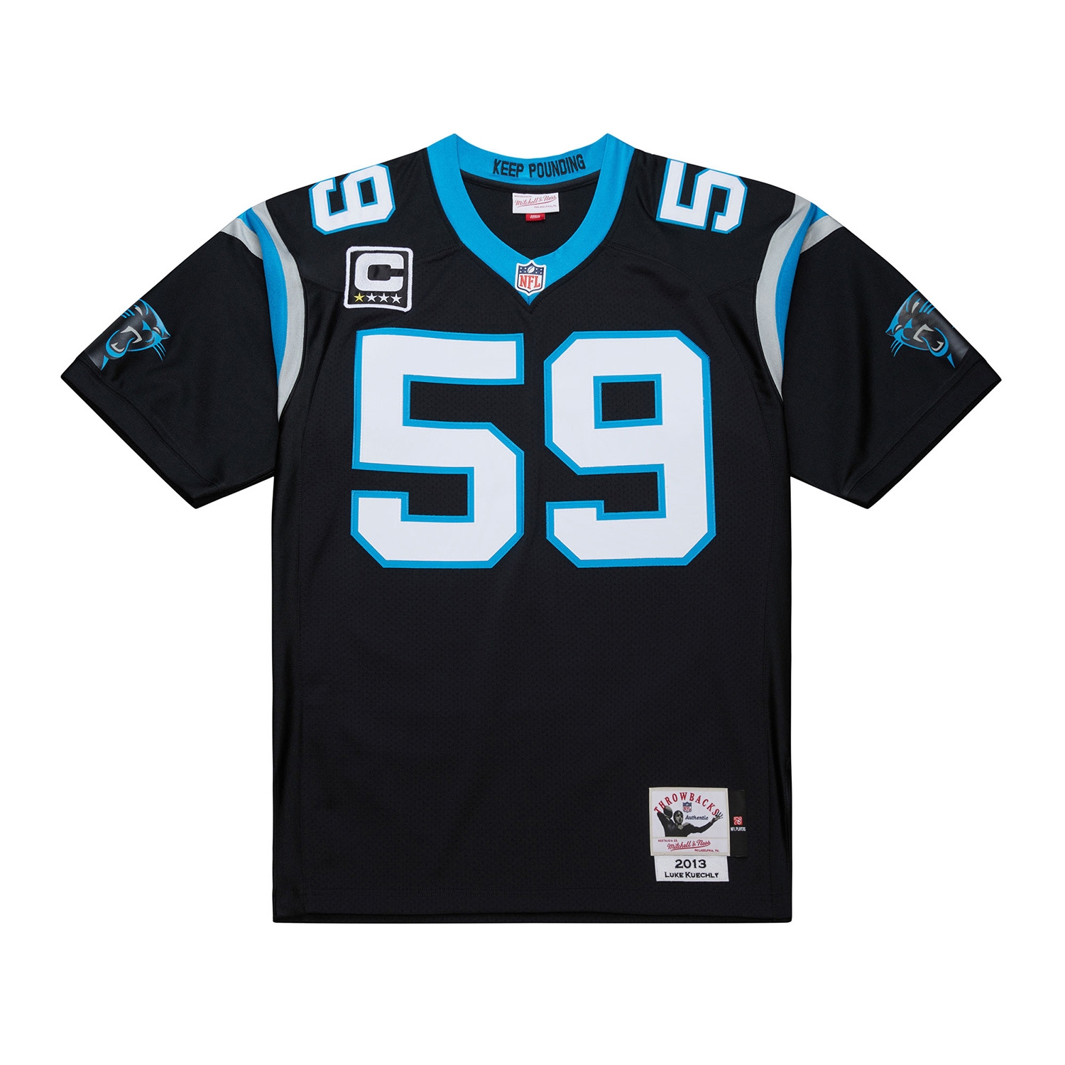 Mitchell & Ness NFL Herren American Football Trikot von Carolina Panthers Legende Luke Kuechly im 2013 Authentic Throwback Design.