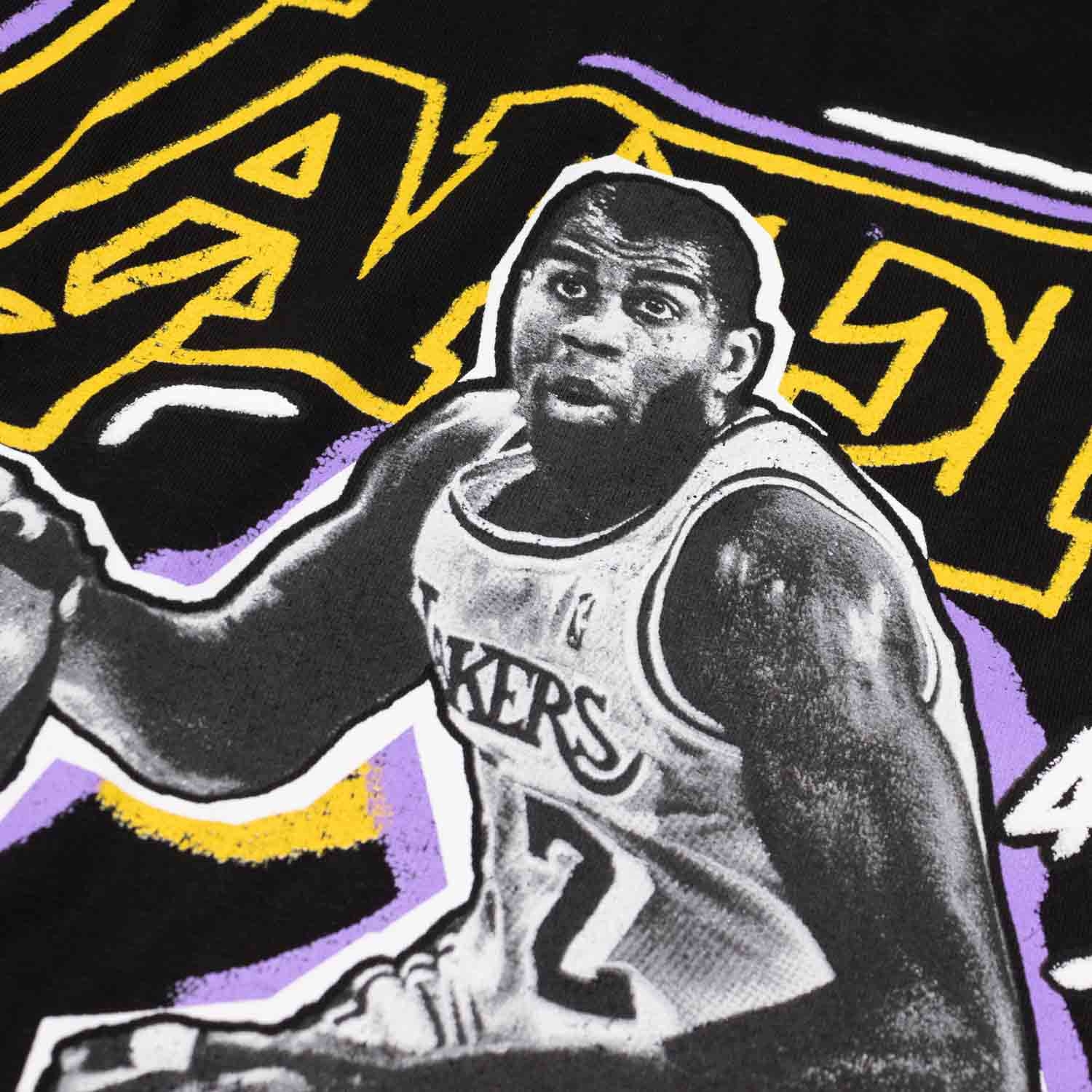 Mitchell & Ness NBA Herren Basketball T-Shirt von Los Angeles Lakers Legende Magic Johnson im Chalked Up Style.
