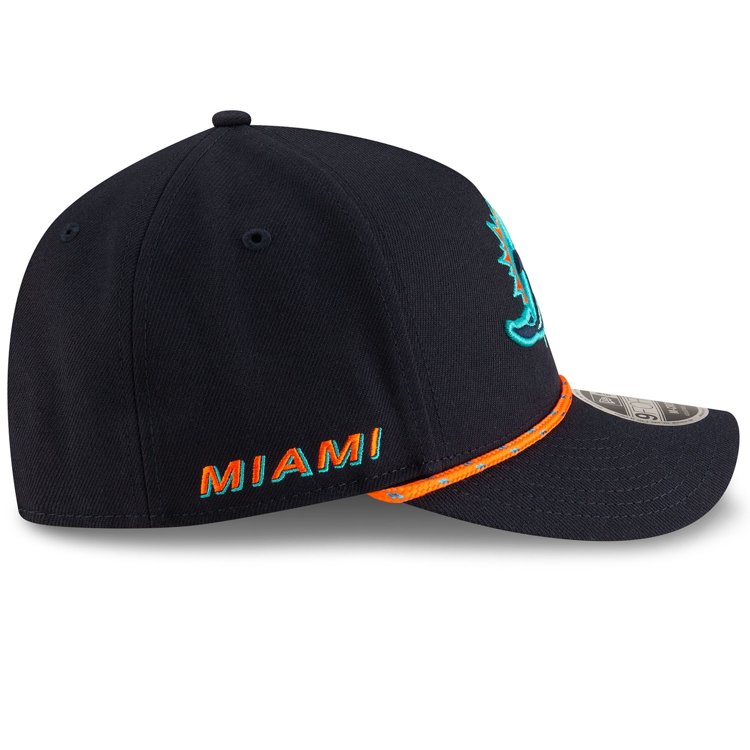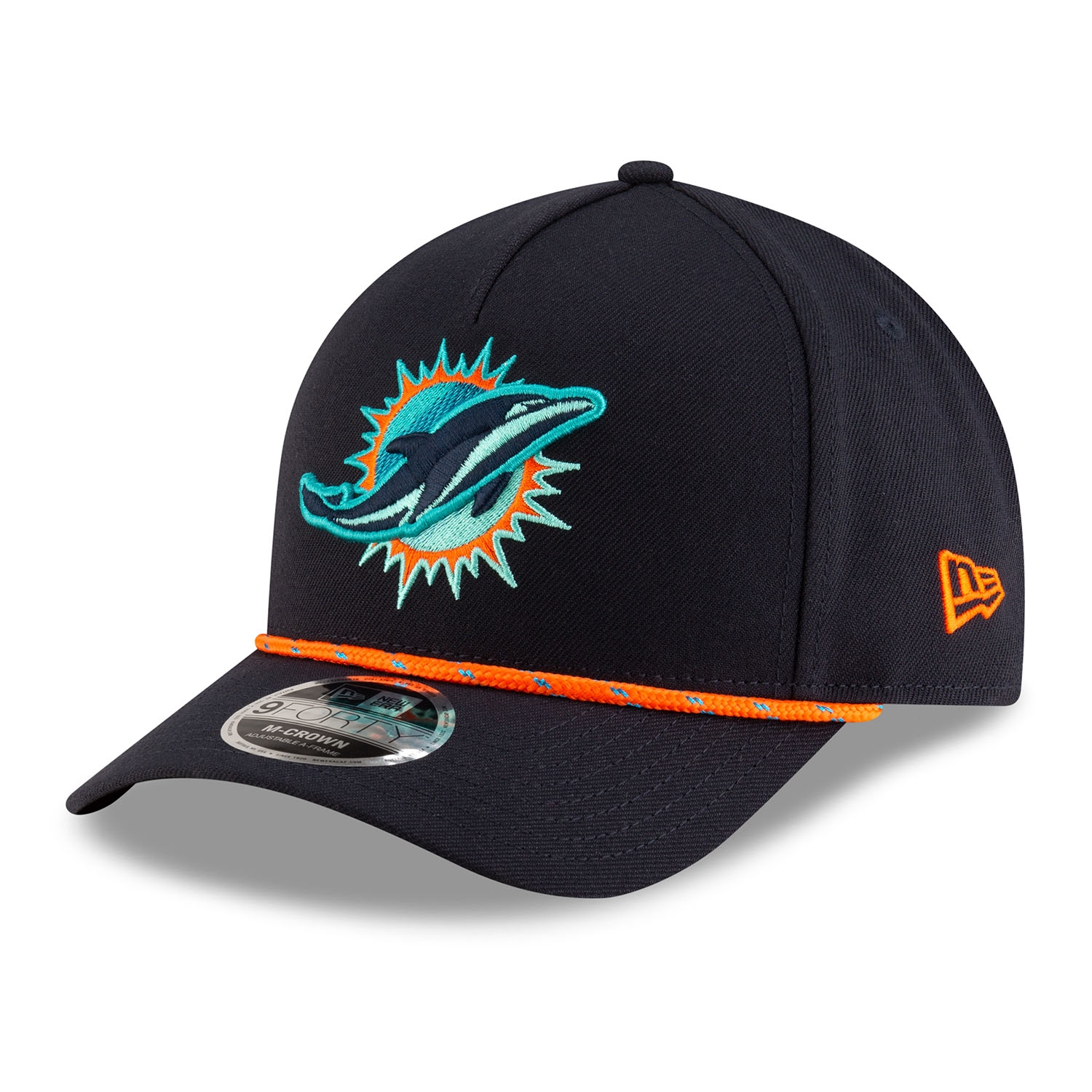 New Era American Football Adjustable Snapback Cap von deinen Miami Dolphins im 9FORTY M-Crown A-Frame Style aus der offiziellen 2025 NFL Rivalries Collection.