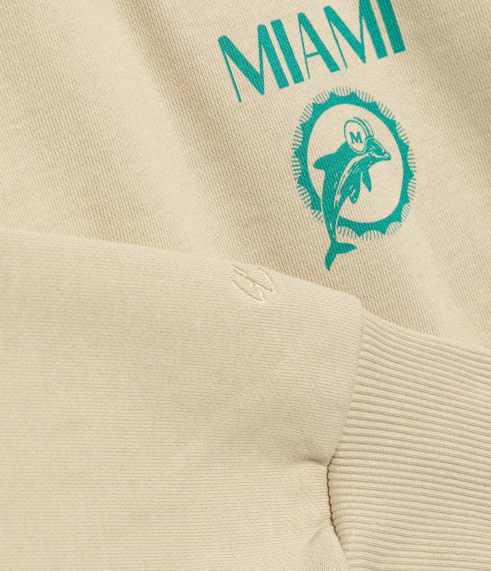 - Klassischer Miami-Stil: Der Sweater zeigt einen großflächigen Miami Dolphins Backprint inklusive des klassischen Teamlogos. Dieses findet sich auch als kleiner Print auf der linken Brust wieder.