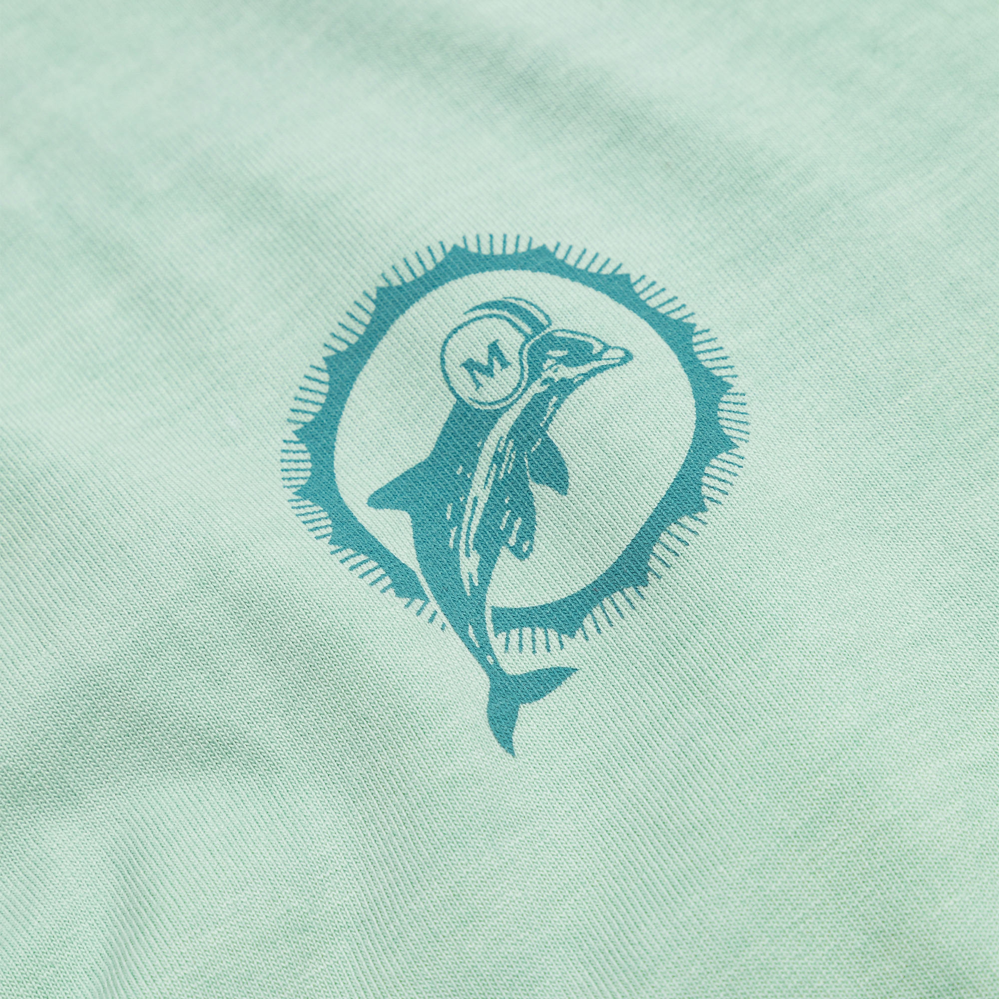 Das stückgefärbte T-Shirt in mintgrün zeigt einen großflächigen Miami Dolphins Backprint inklusive Classic Logo mit helmtragenden Delphin. Der Logo-Print auf der linken Brust und das Canvas Weblabel auf Taillenhöhe machen den Retro-Look komplett.