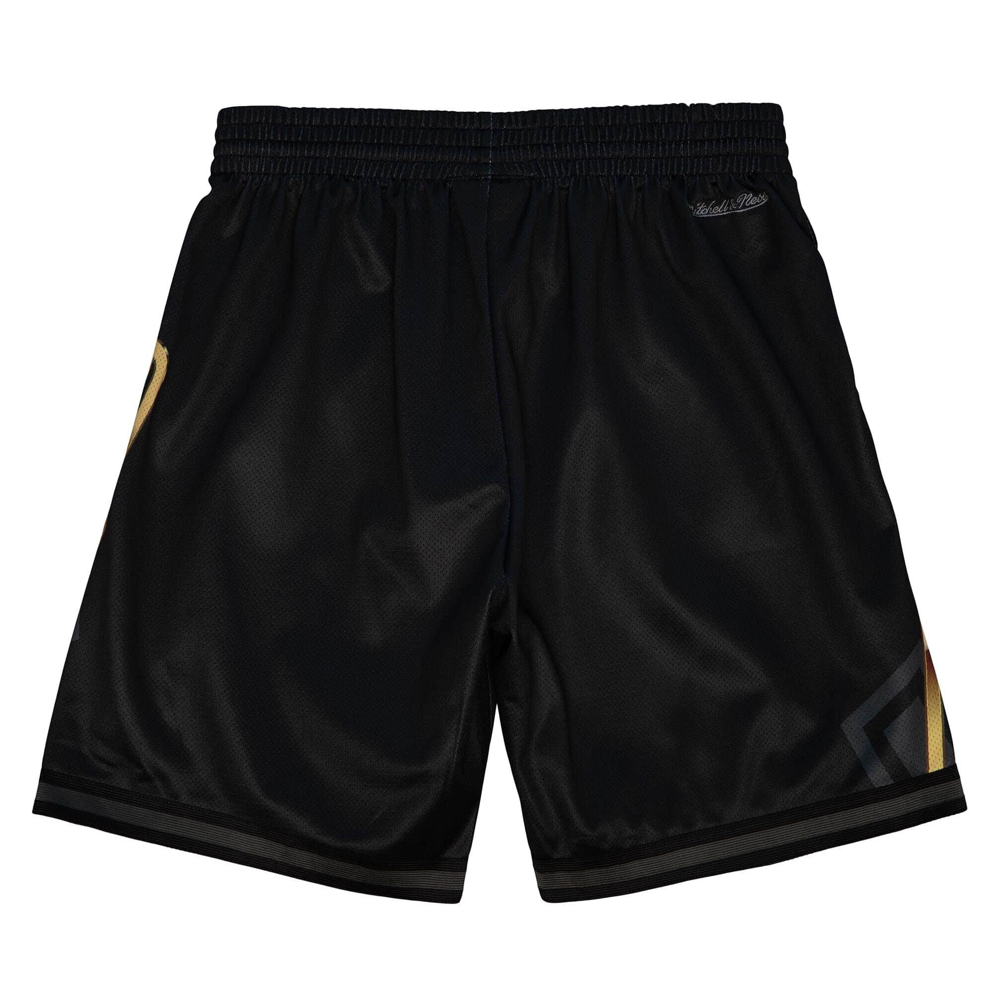 Die vierte Auflage der beliebten Big Face Kollektion von Mitchell and Ness kommt mit dem Gold-Status. Die schwarzen Shorts sind auf der Vorderseite mit den übergroßen Miami Heat Wordmark in Gold dekoriert, dunkelgraue Schatten der Schriftzüge sorgen für den besonderen Look. Die klassischen NBA Shorts bestehen aus doppeltseitigen Polyester-Mesh und stehen den bekannten Mitchell & Ness Swingman Shorts in Verarbeitung und Style in nichts nach. Die seitlichen Taschen und der elastische Hosenbund mit innerem Kordelzug sorgen für einen angenehmen Tragekomfort. Der extra große Miami Heat Schriftzug ist als Sublimationsdruck direkt in den Stoff eingebracht, zusätzlich ist ein kleines Team-Label am inneren Saum angebracht.