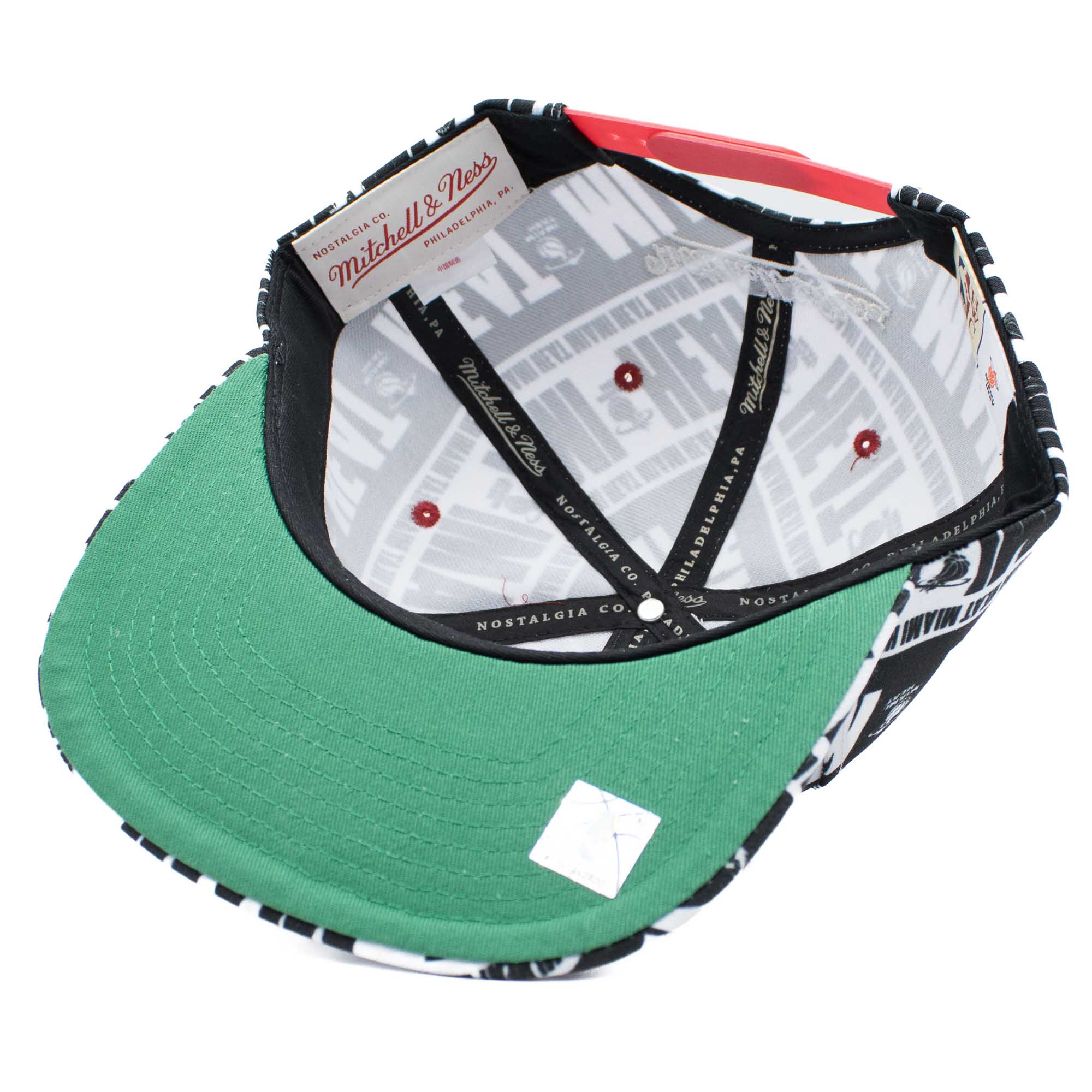 Zeige deine wahre Passion mit der Meat Paper Cap von Mitchell & Ness. Die Vorderseite der Snapback ist mit dem Retro Miami Heat Teamlogo bestickt. Als besonderes Extra ist die gesamte Cap mit Teamlogos und Teamnamen überzogen. Die Rückseite ist mit dem Mitchell & Ness Schriftzug bestickt. Die Schirmunterseite ist klassisch grün.