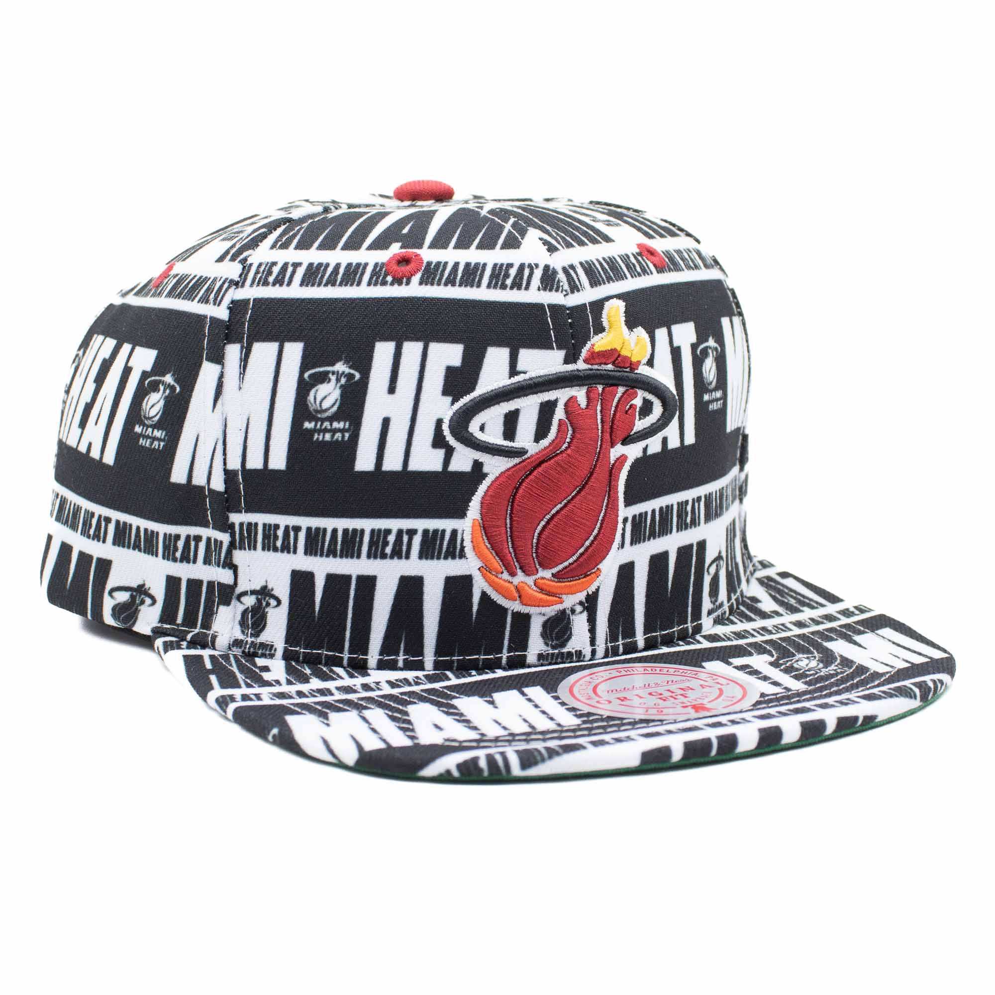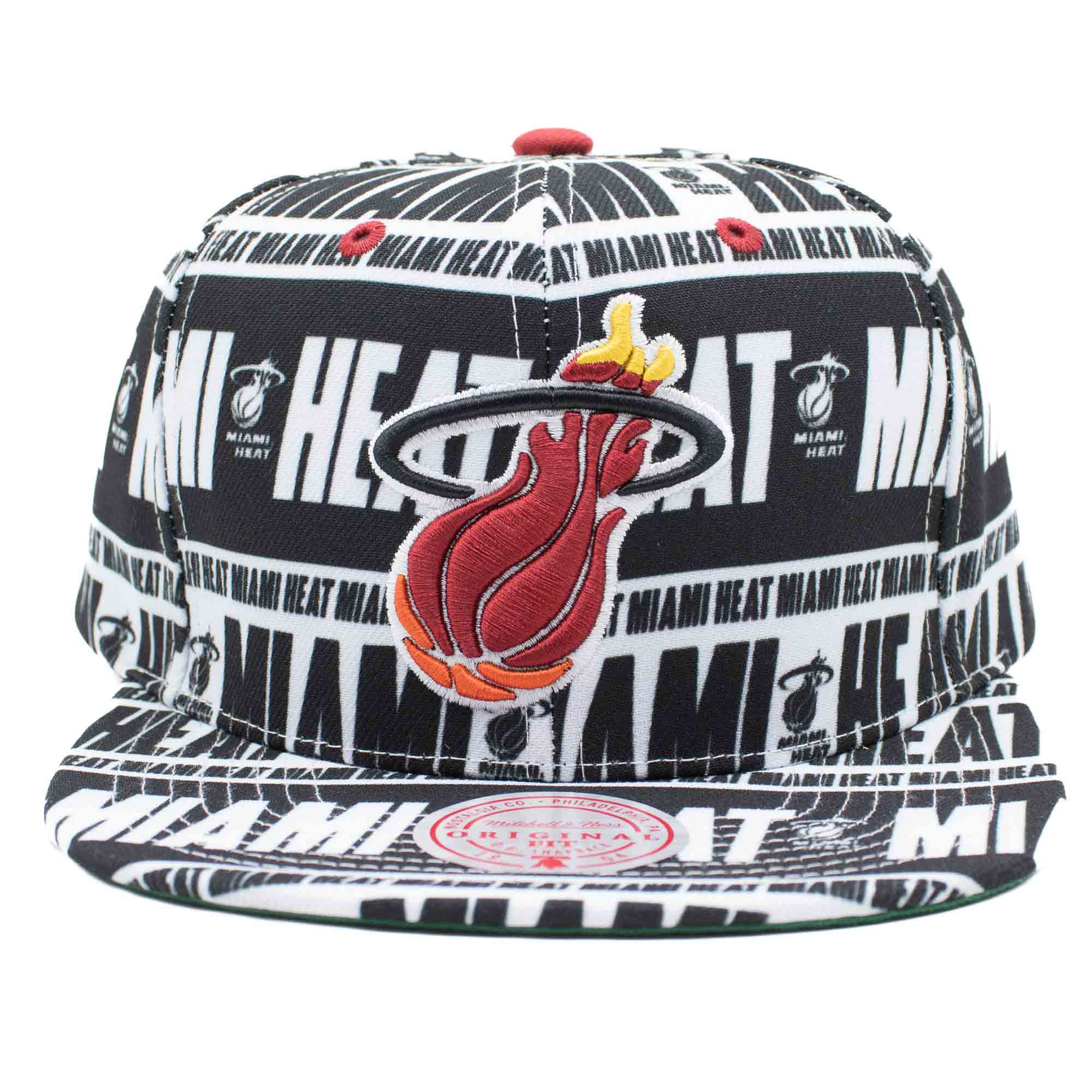 Mitchell & Ness NBA Original Fit Basketball Snapback Cap von deinen Miami Heat im Hardwood Classics Meat Paper Design.