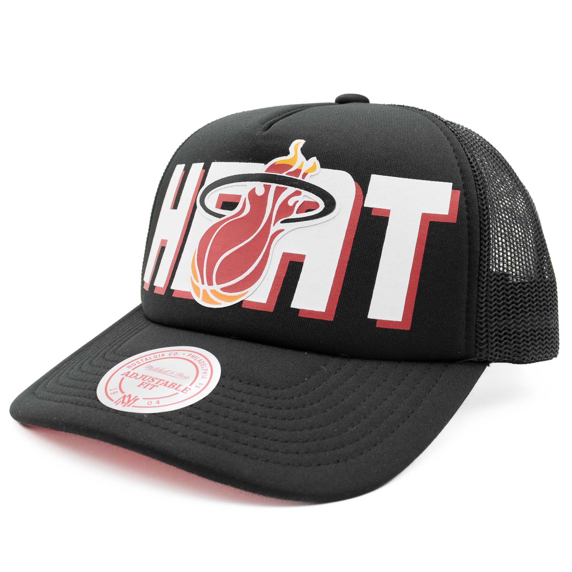 Mitchell & Ness NBA Adjustable Fit Trucker Cap von deinen Miami Heat im Team Billboard Style.