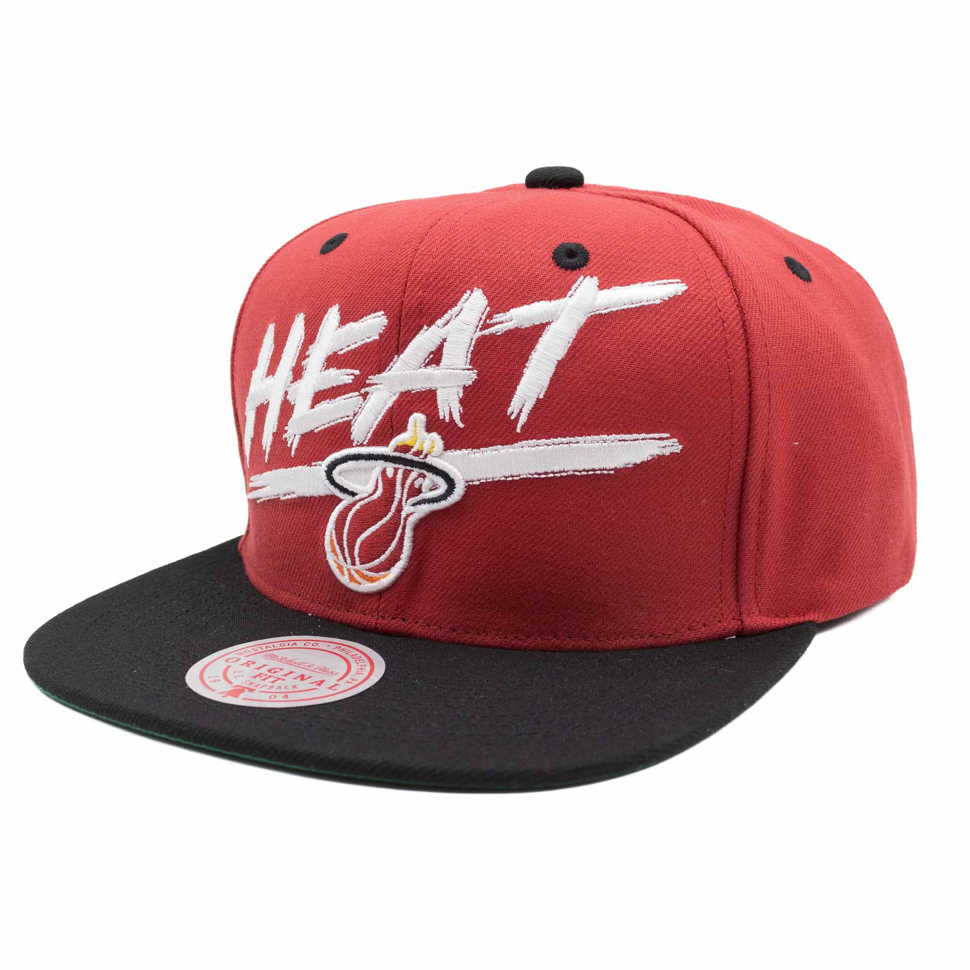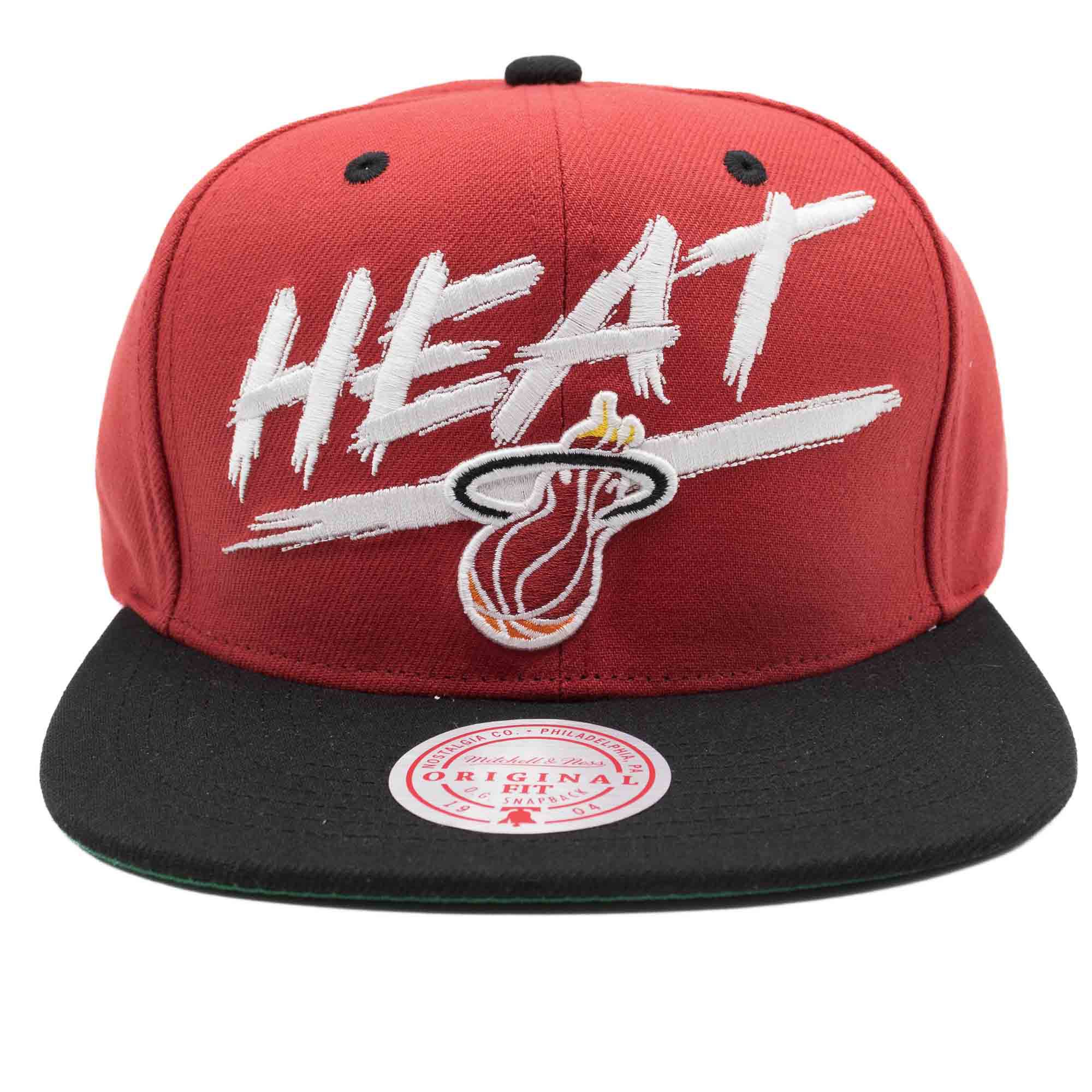 Mitchell & Ness NBA Original Fit Basketball Snapback Cap von deinen Miami Heat im zweifarbigen Transcript Style.
