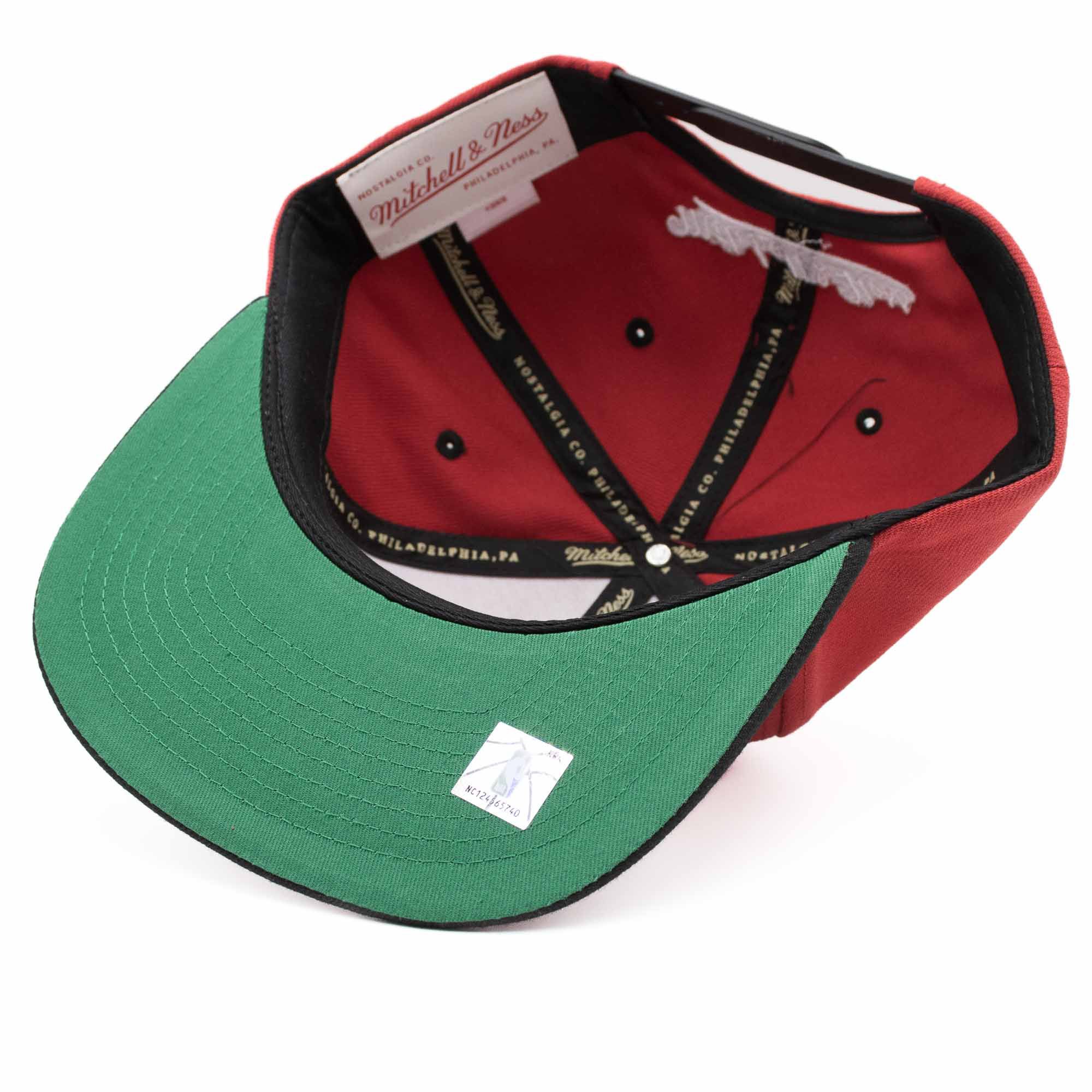 Klassische Mitchell & Ness Original Fit Snapback mit schlanken, flachen Schirm und hoher, fester Krone. Für mehr Atmungsaktivität sorgen die gestickten Ösen; das innenseitige Schweißband erhöht den Tragekomfort. Den flachen Capschirm kannst du nach Belieben in die gewünschte Form biegen.