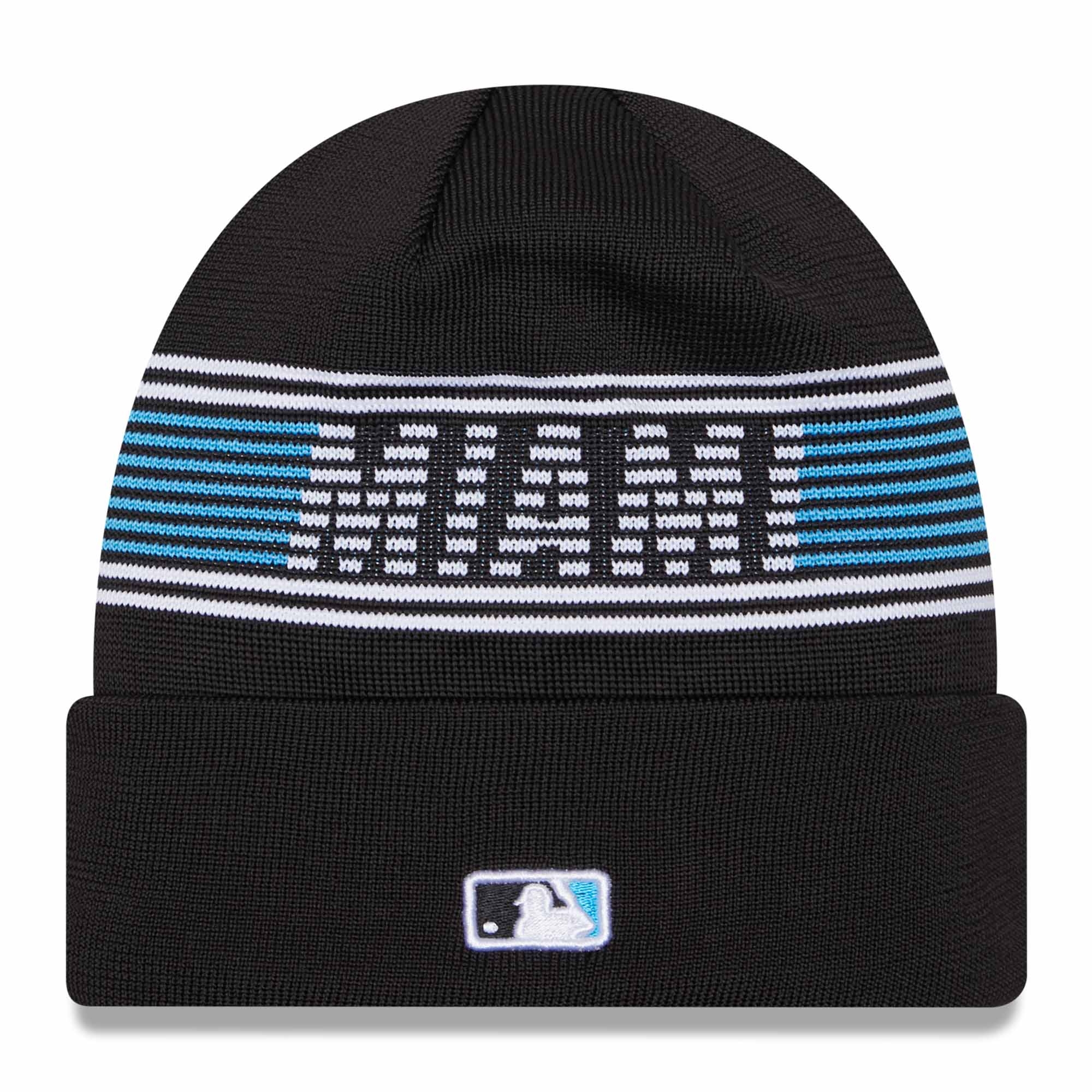 New Era Baseball Beanie Wintermütze von deinen Miami Marlins aus der offiziellen 2024 MLB Clubhouse Kollektion.